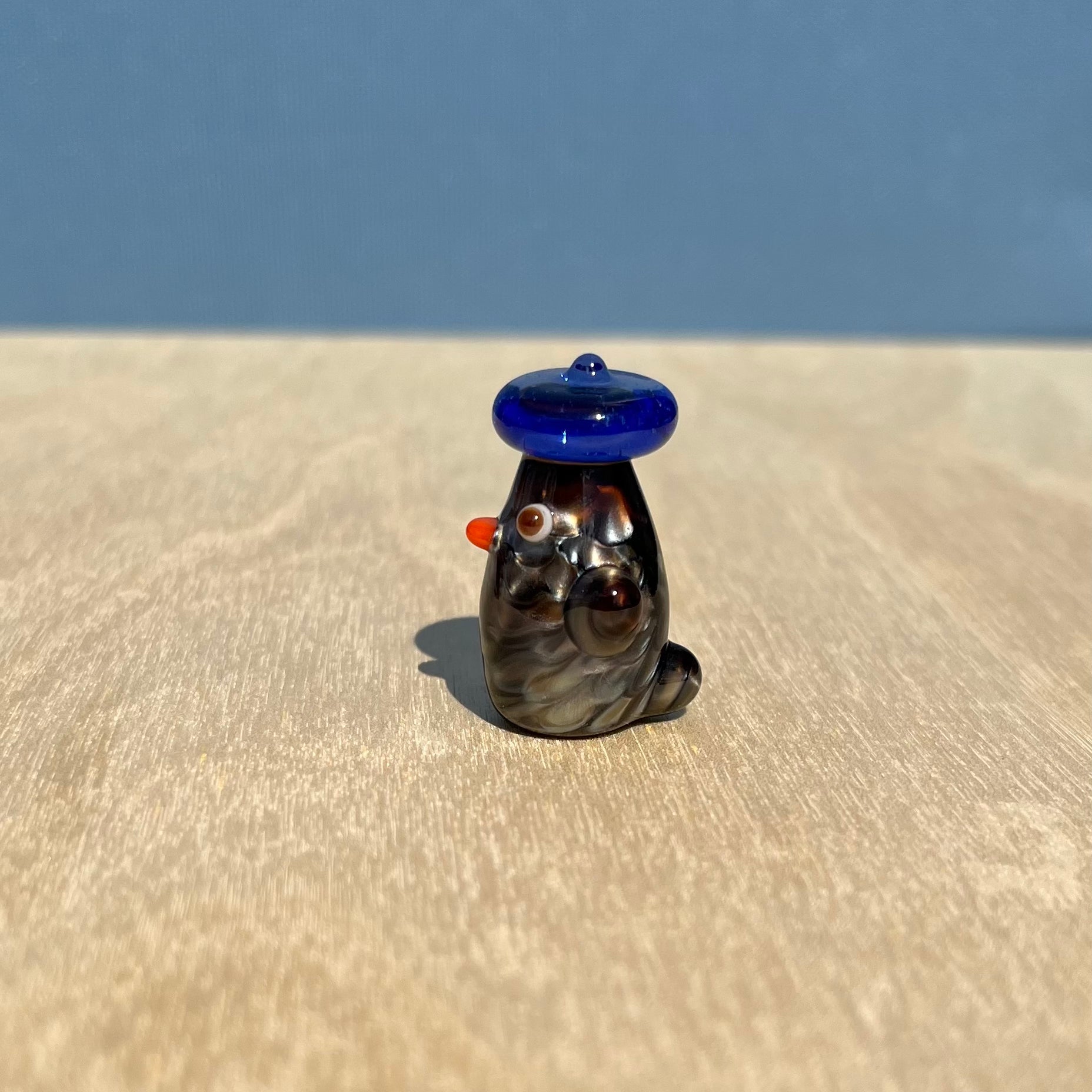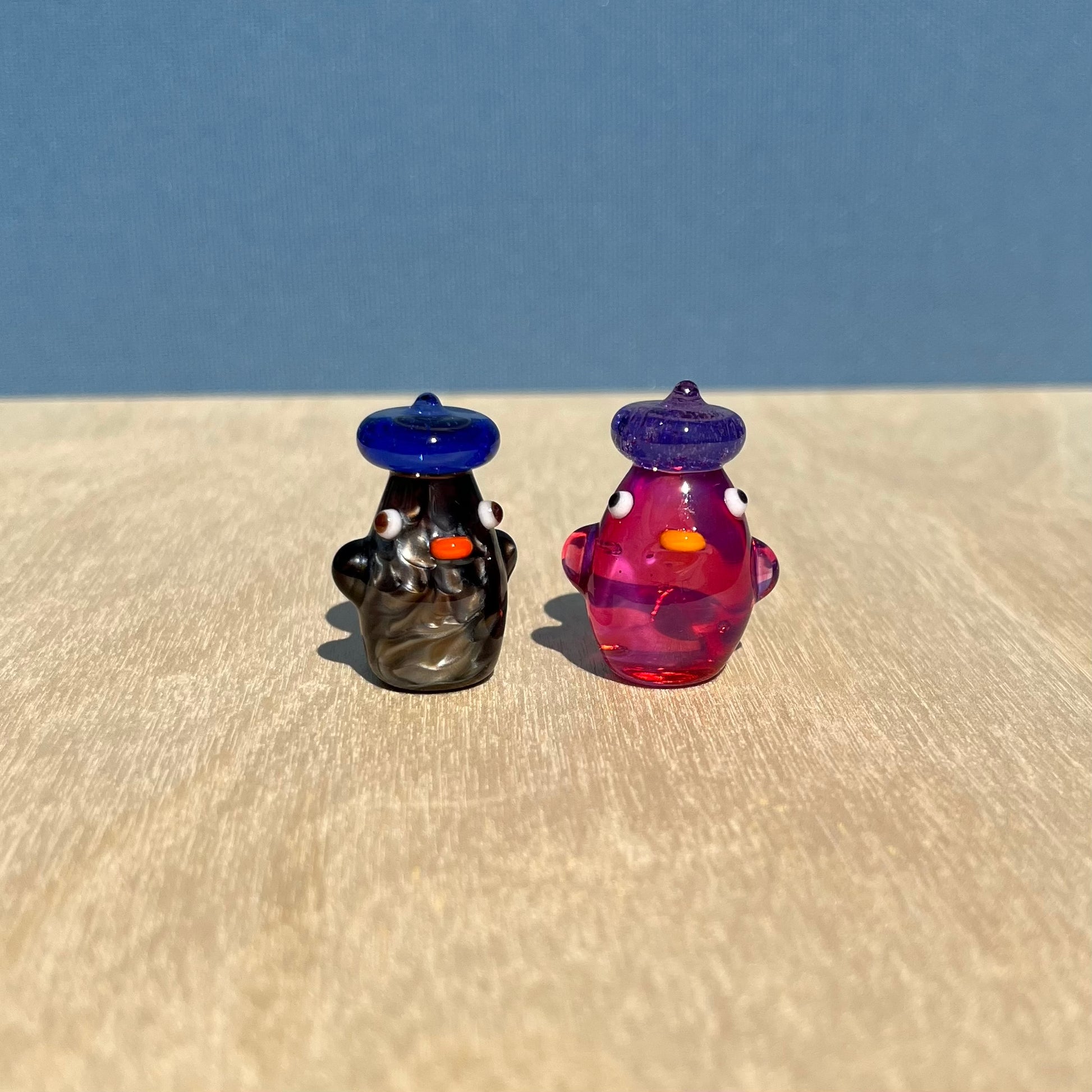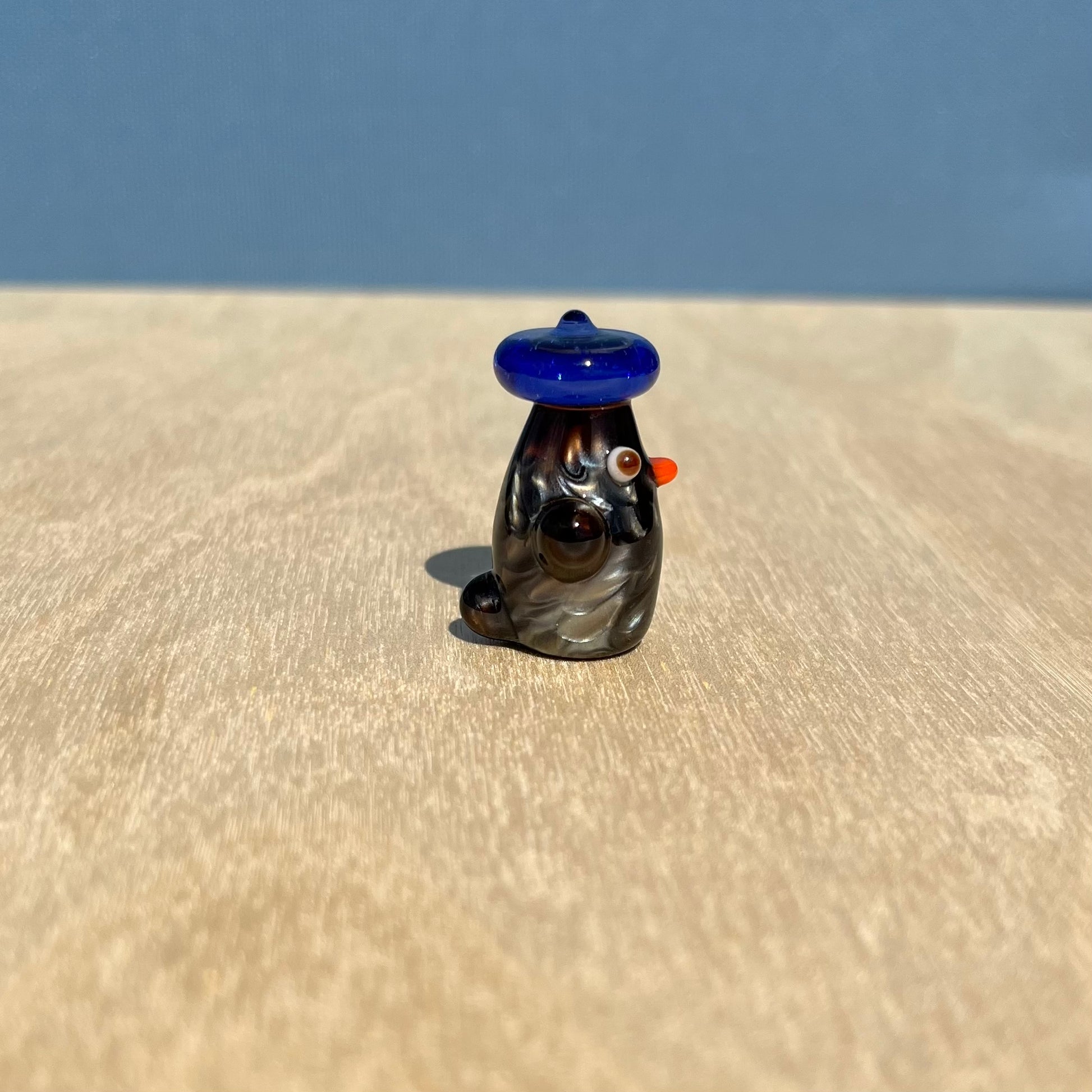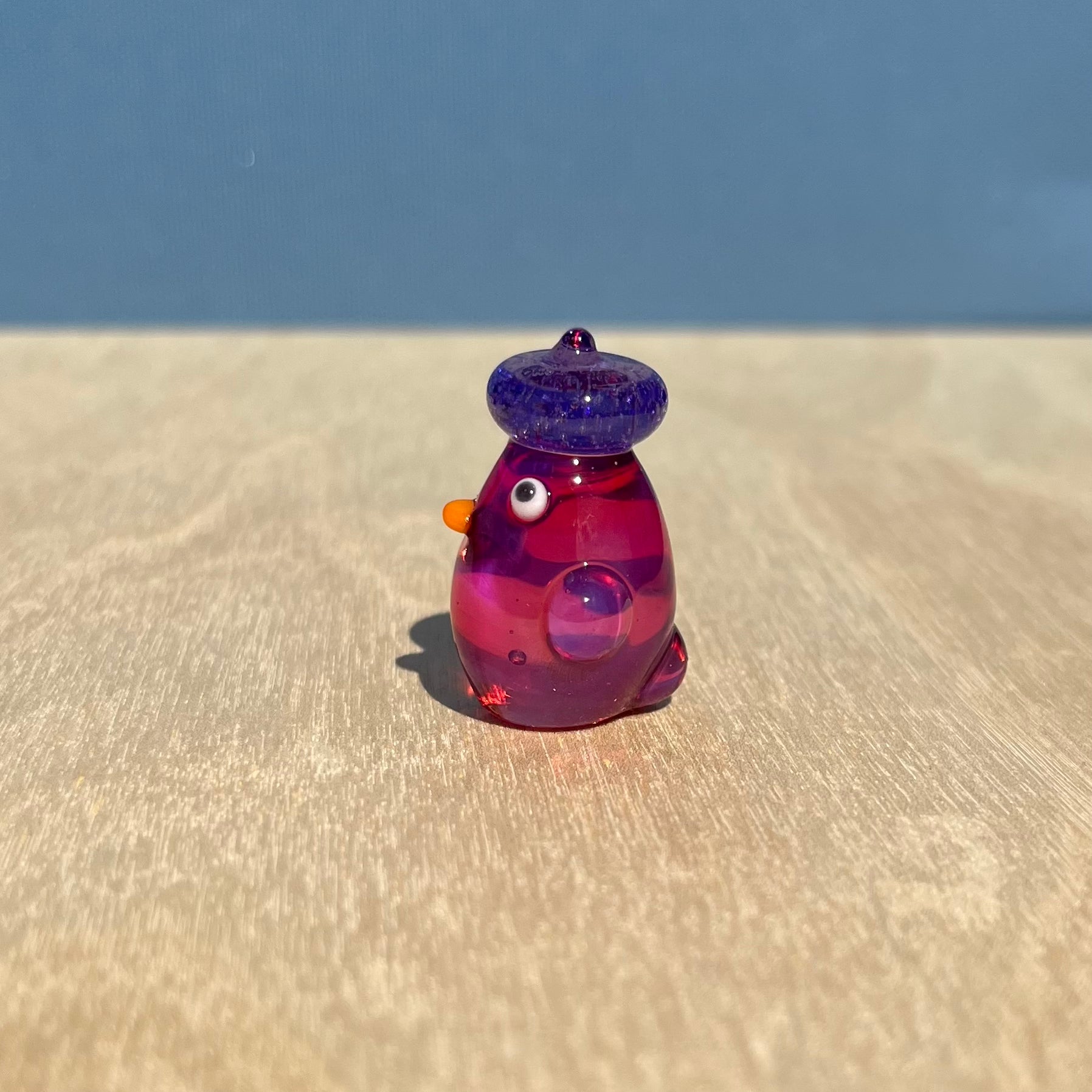 This is a glass figurine of a duck in my fanciest colors- "Electrum" and "Telemagenta". These are most expensive colors, and they don't even make this formulation of Electrum anymore! : )