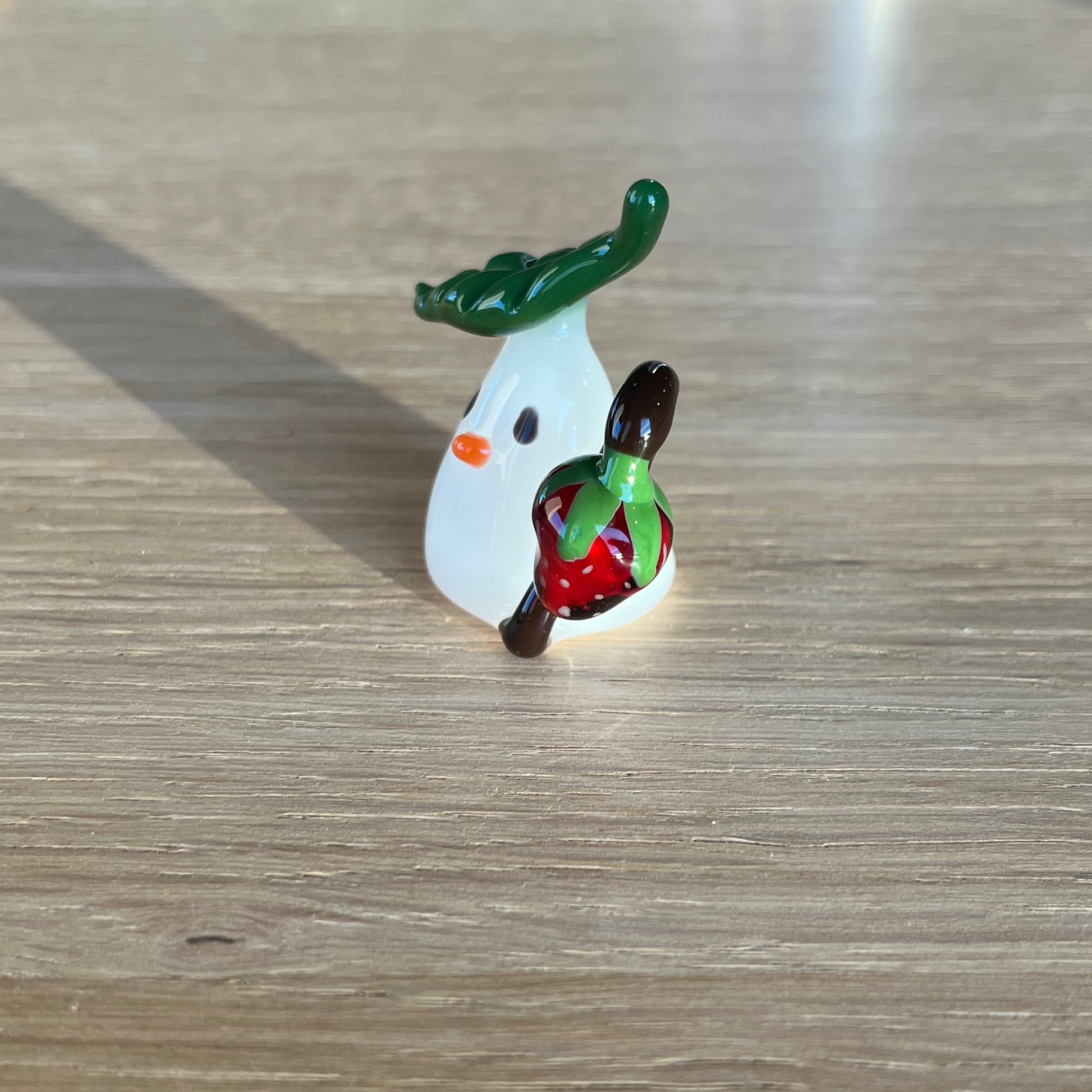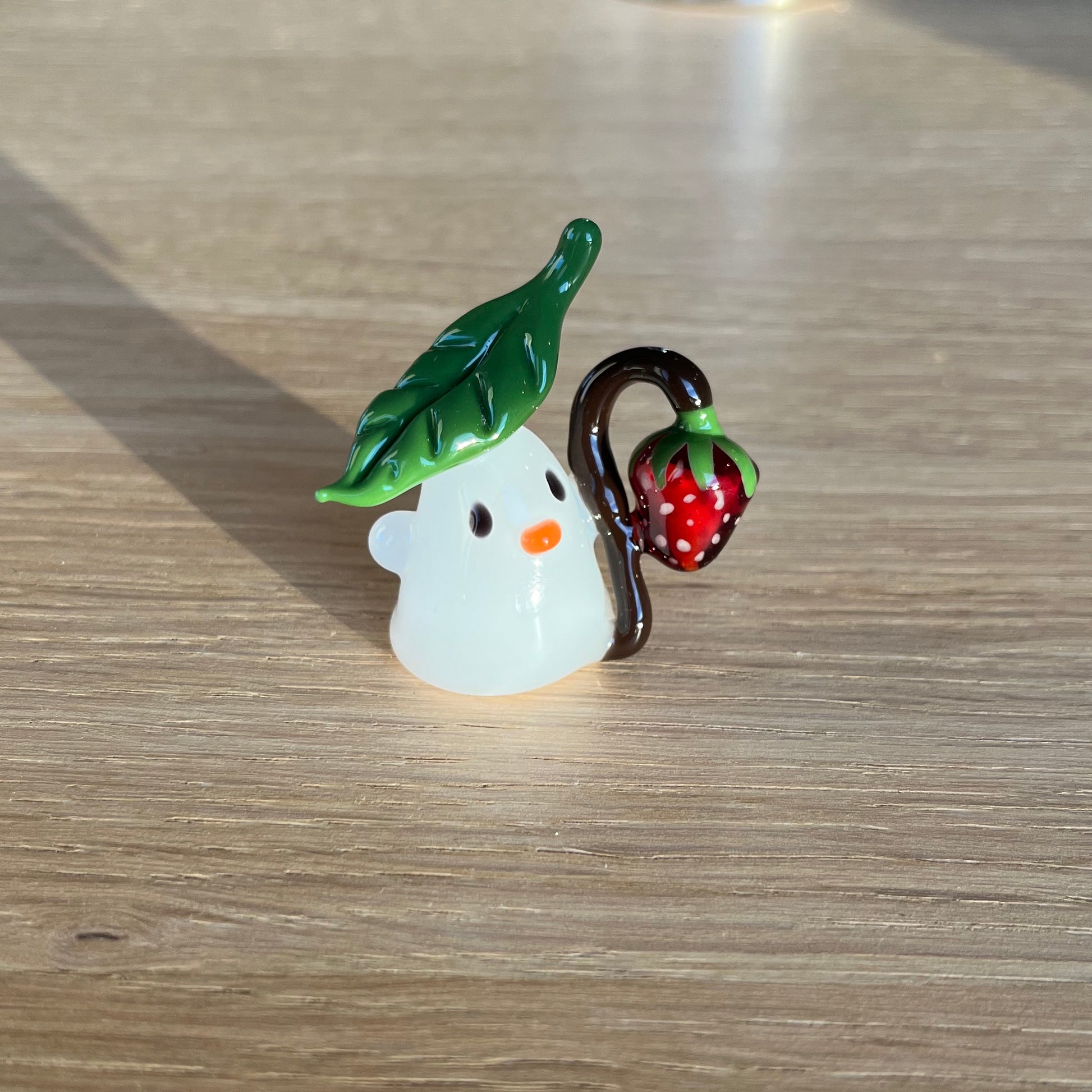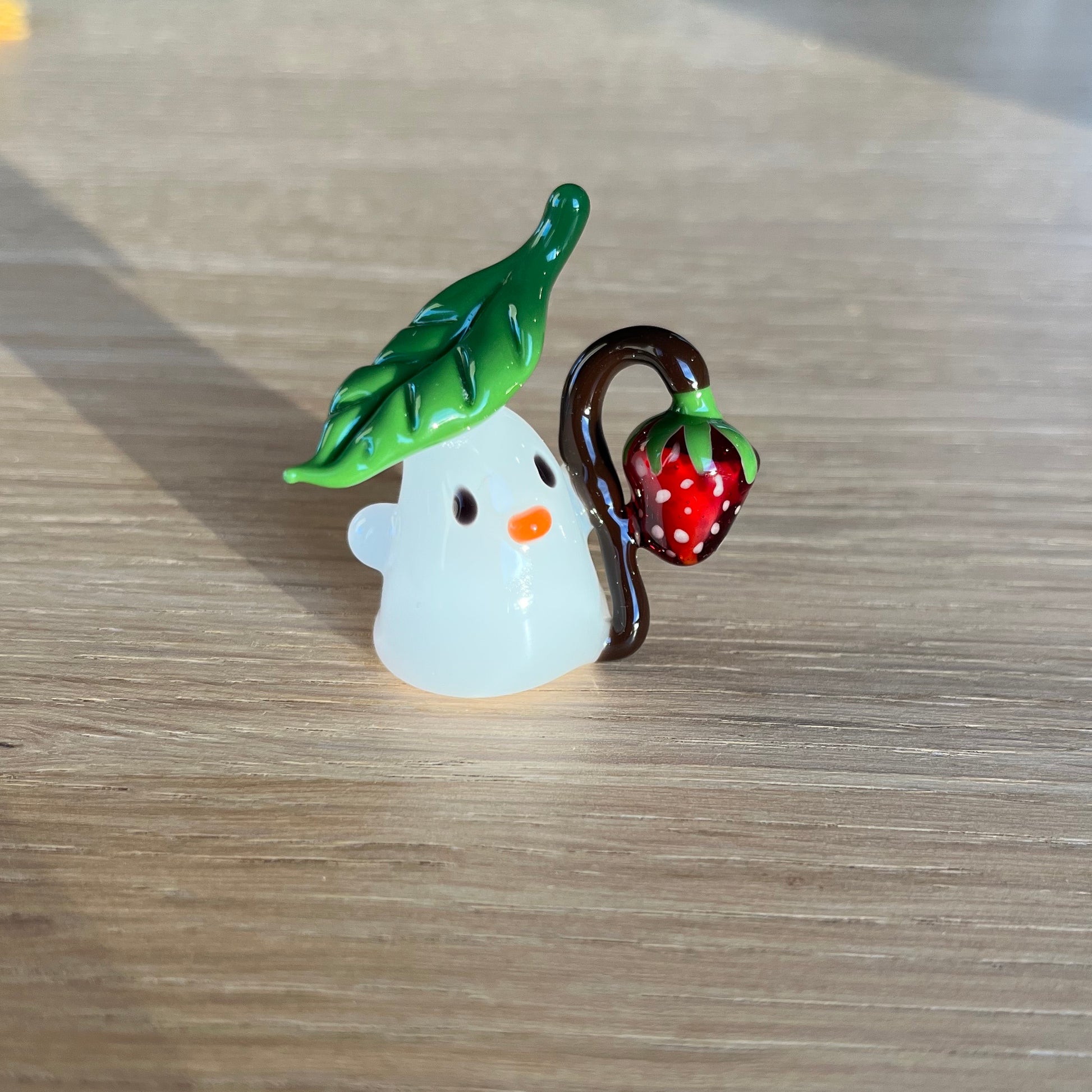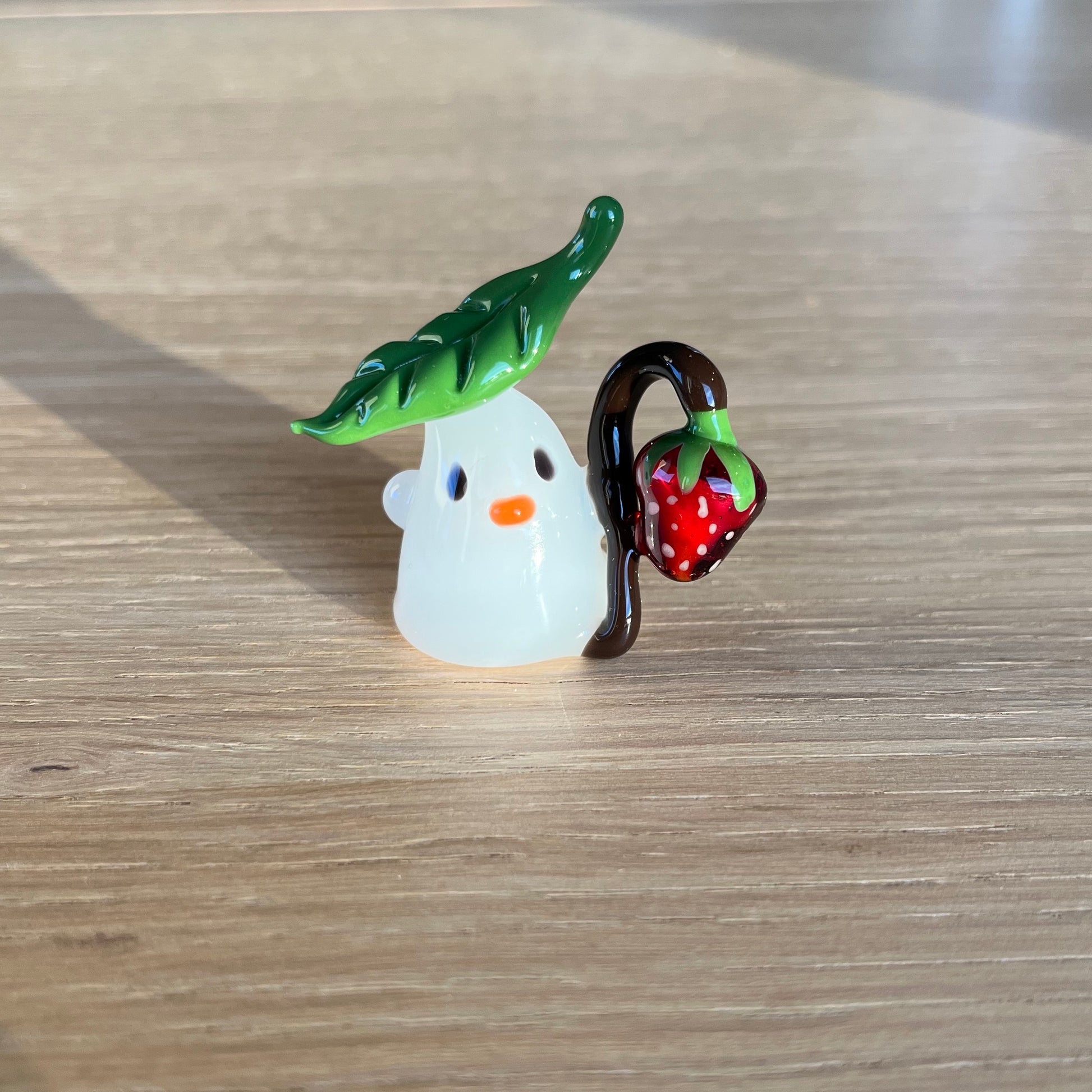 This is a glass figurine of a ghost duck with strawberry lantern for Amy. : )