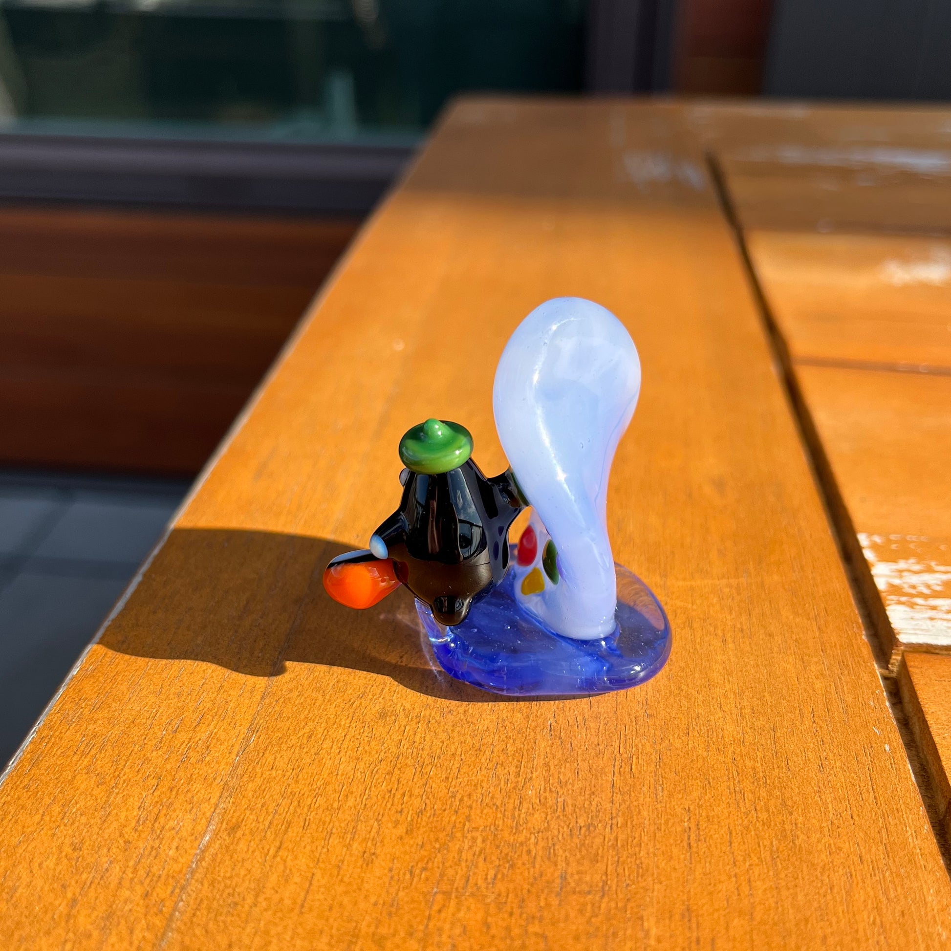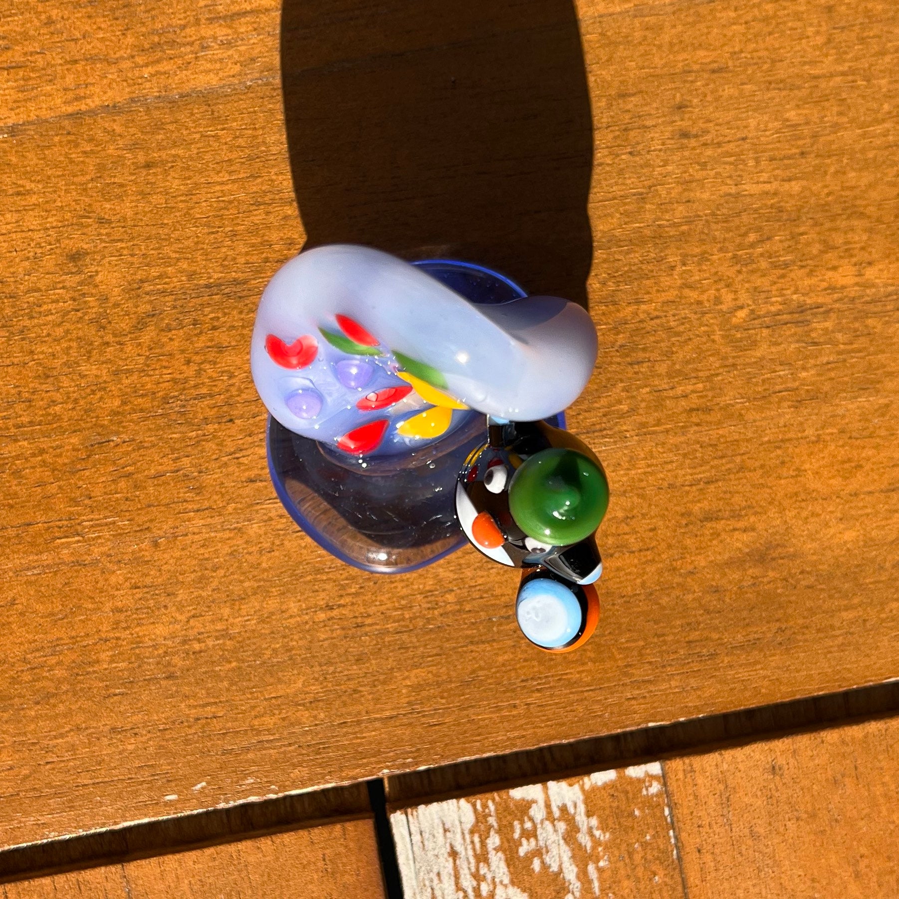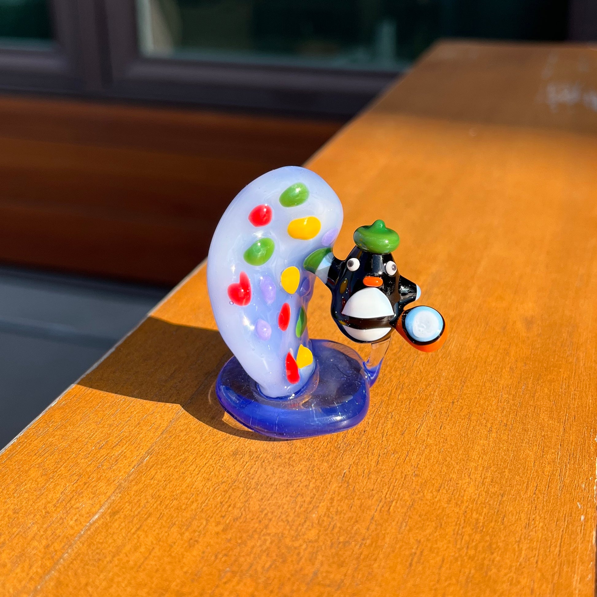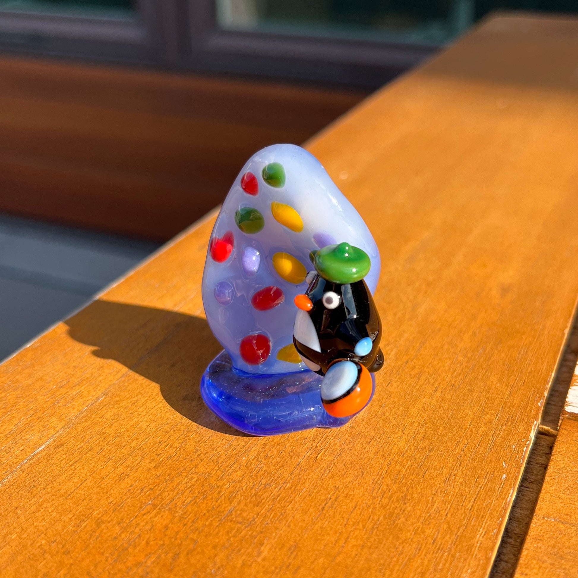 This is a glass figurine of a bouldering penguin duck for Corey. : )