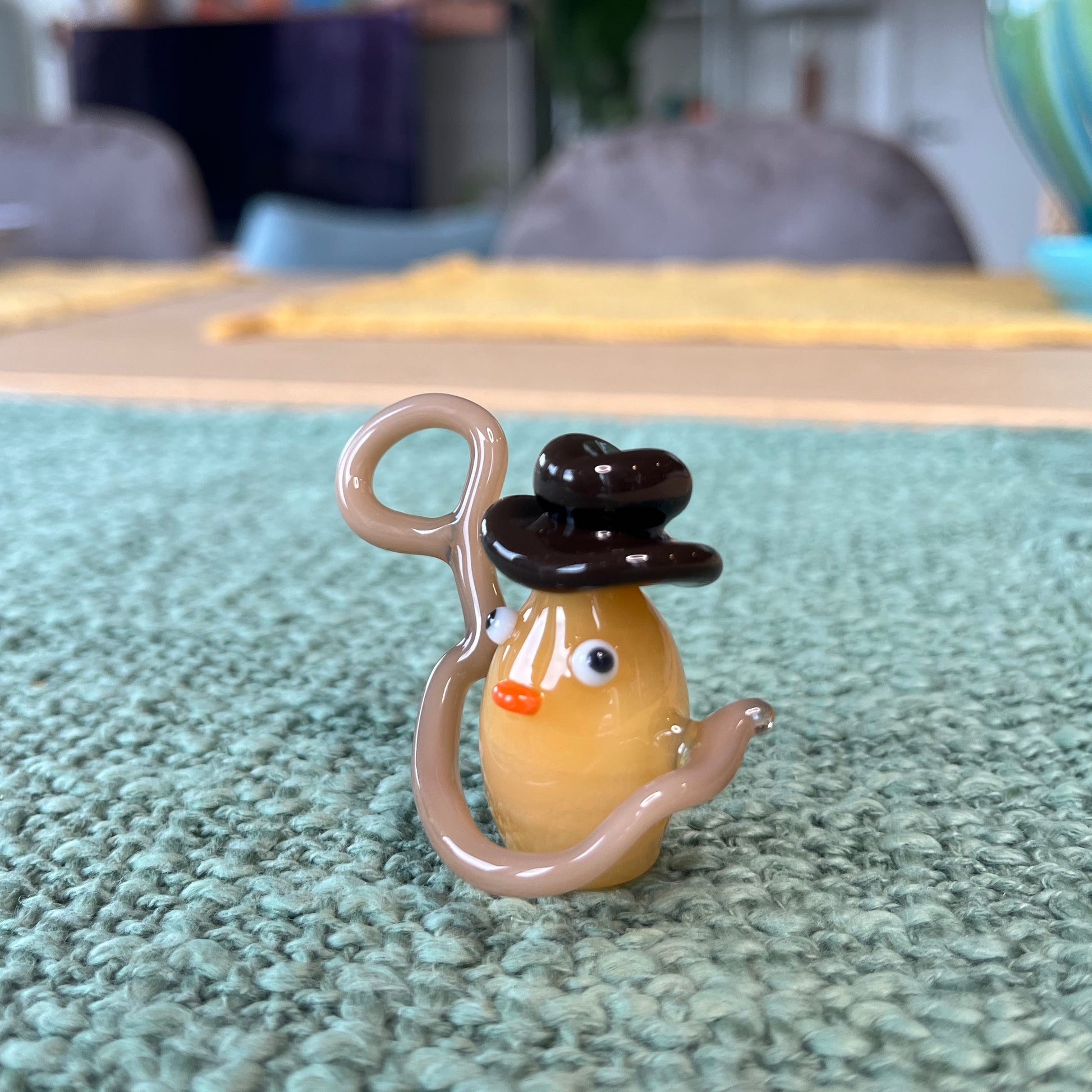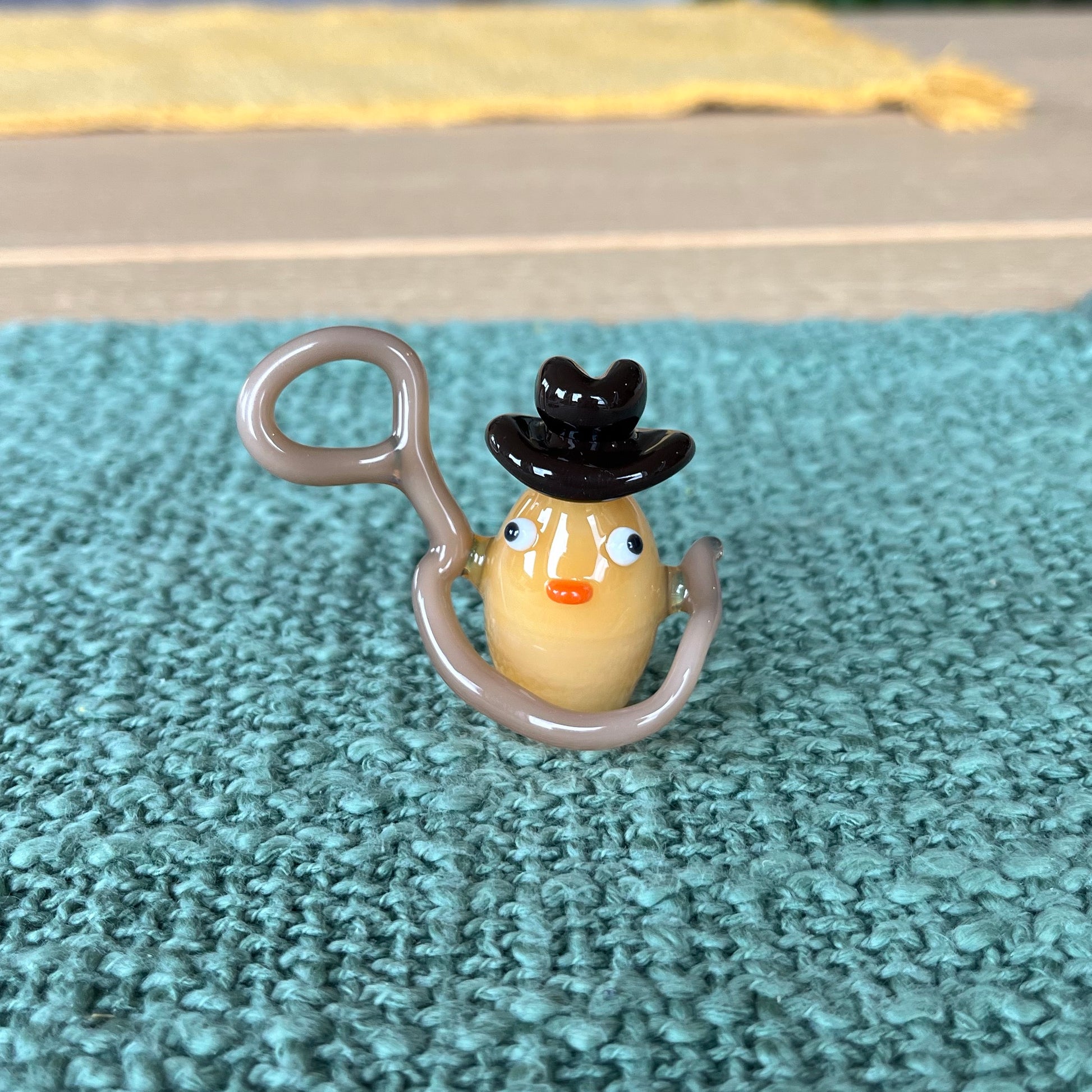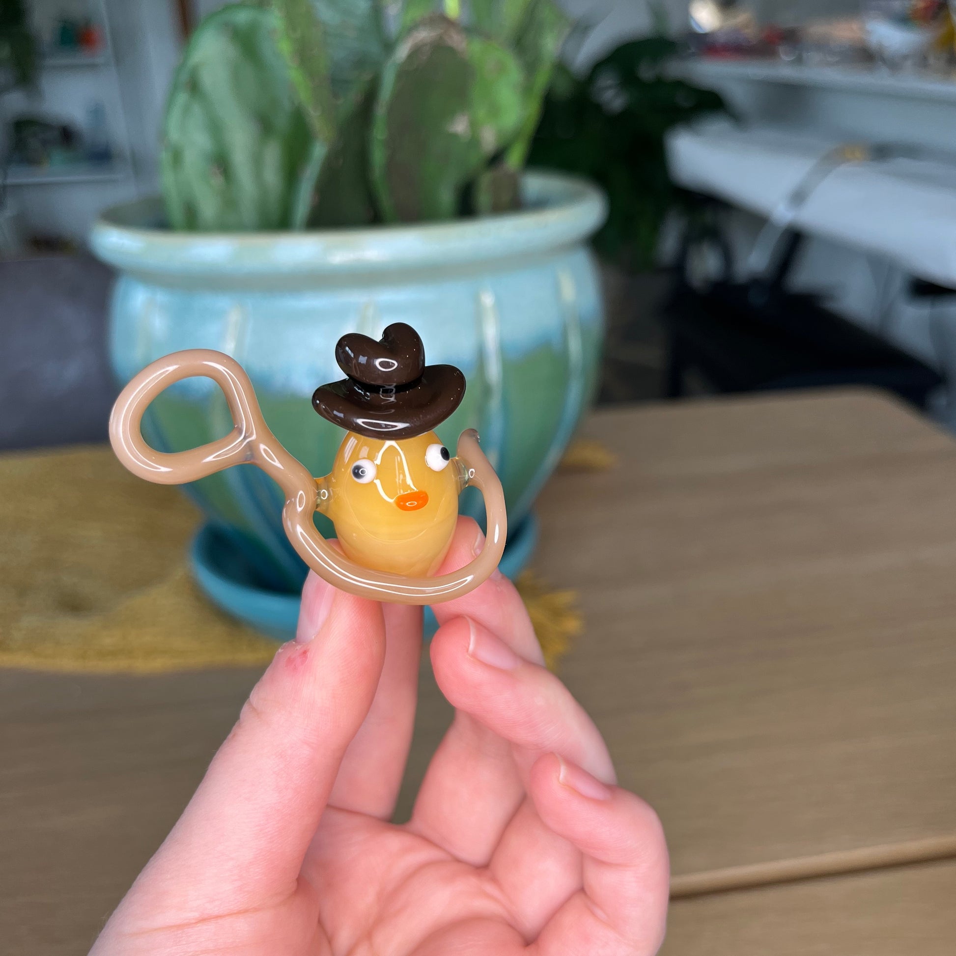 This is a glass figurine of a cowboy duck for Kennedi. : )