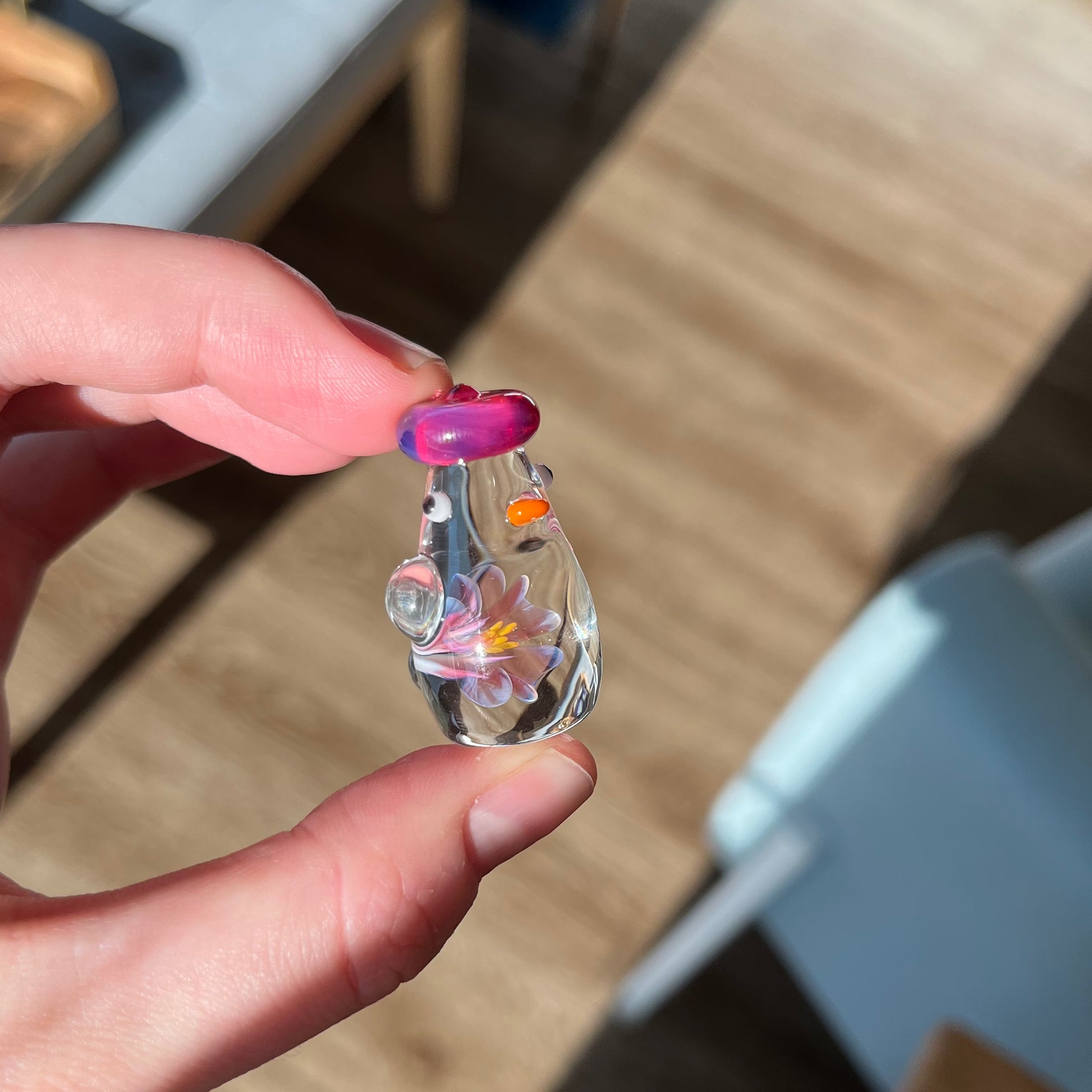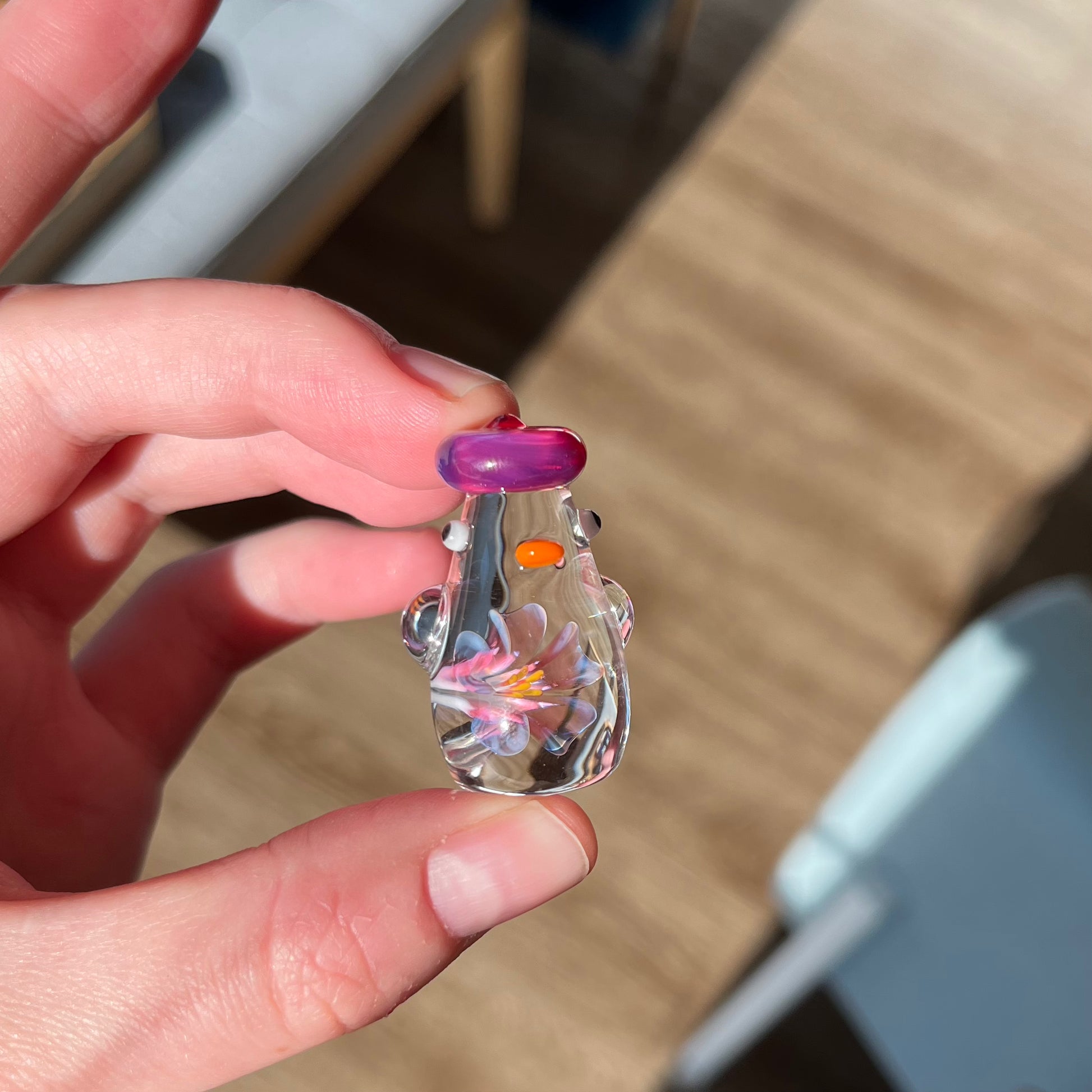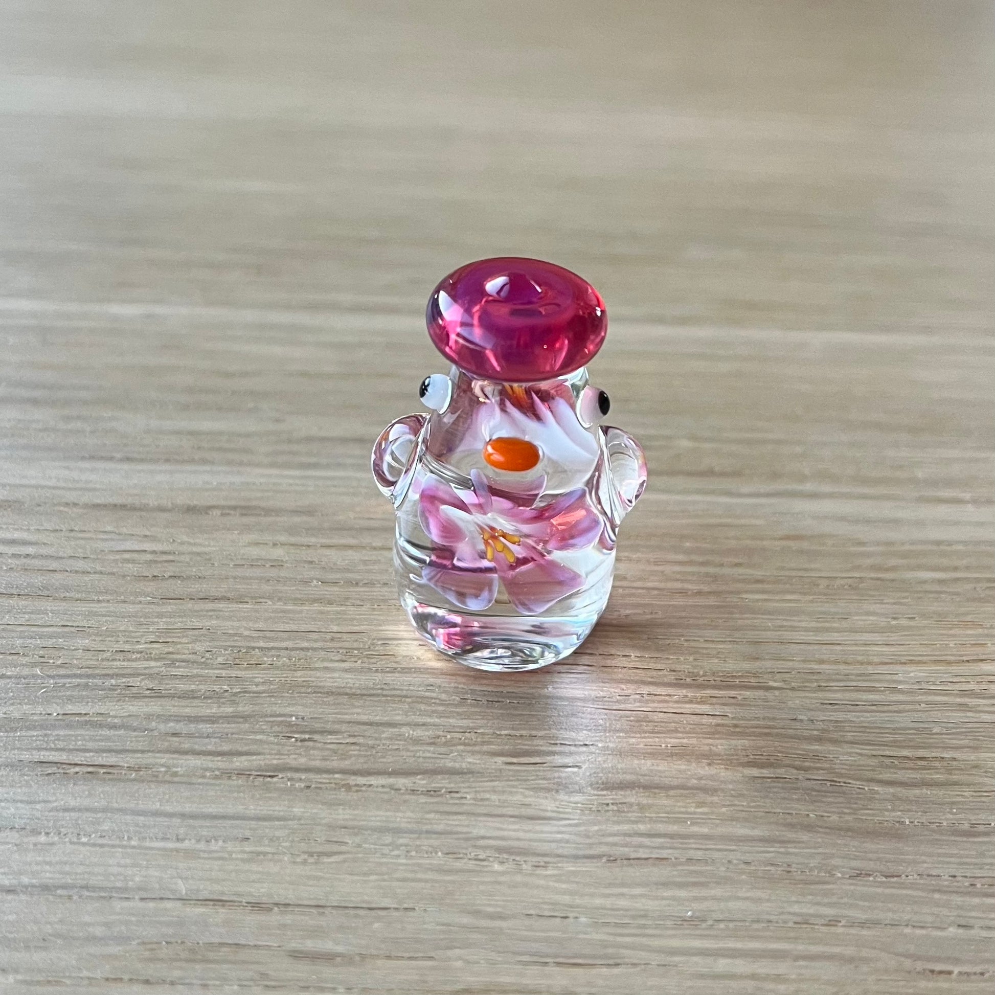 This is a glass figurine of a cherry blossom duck for Lori, made in collaboration with Aaron Swanson of Swan Glass (@swanglass on Instagram). : )