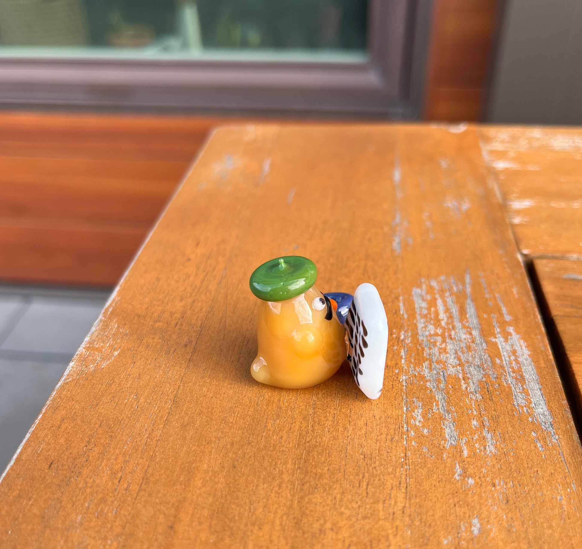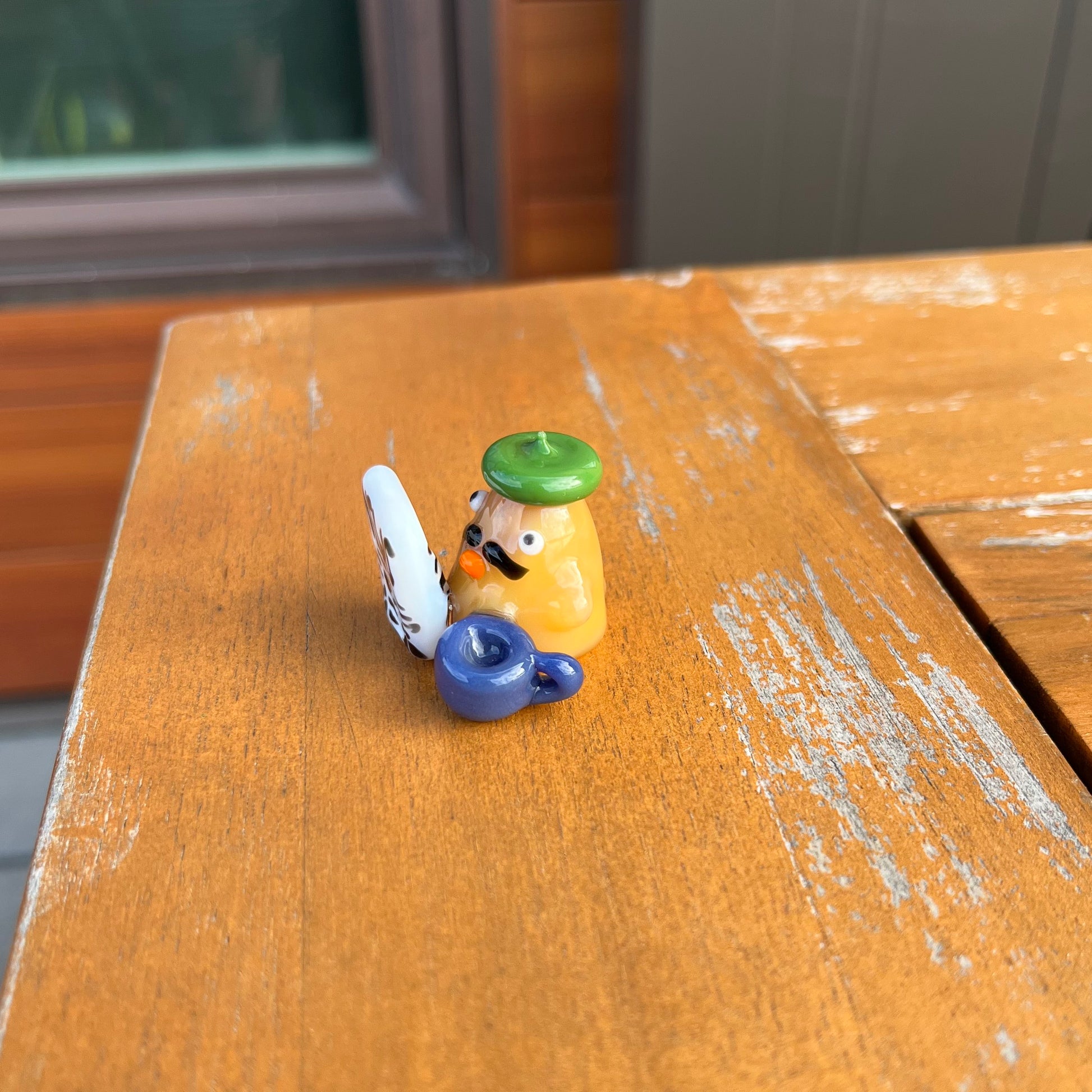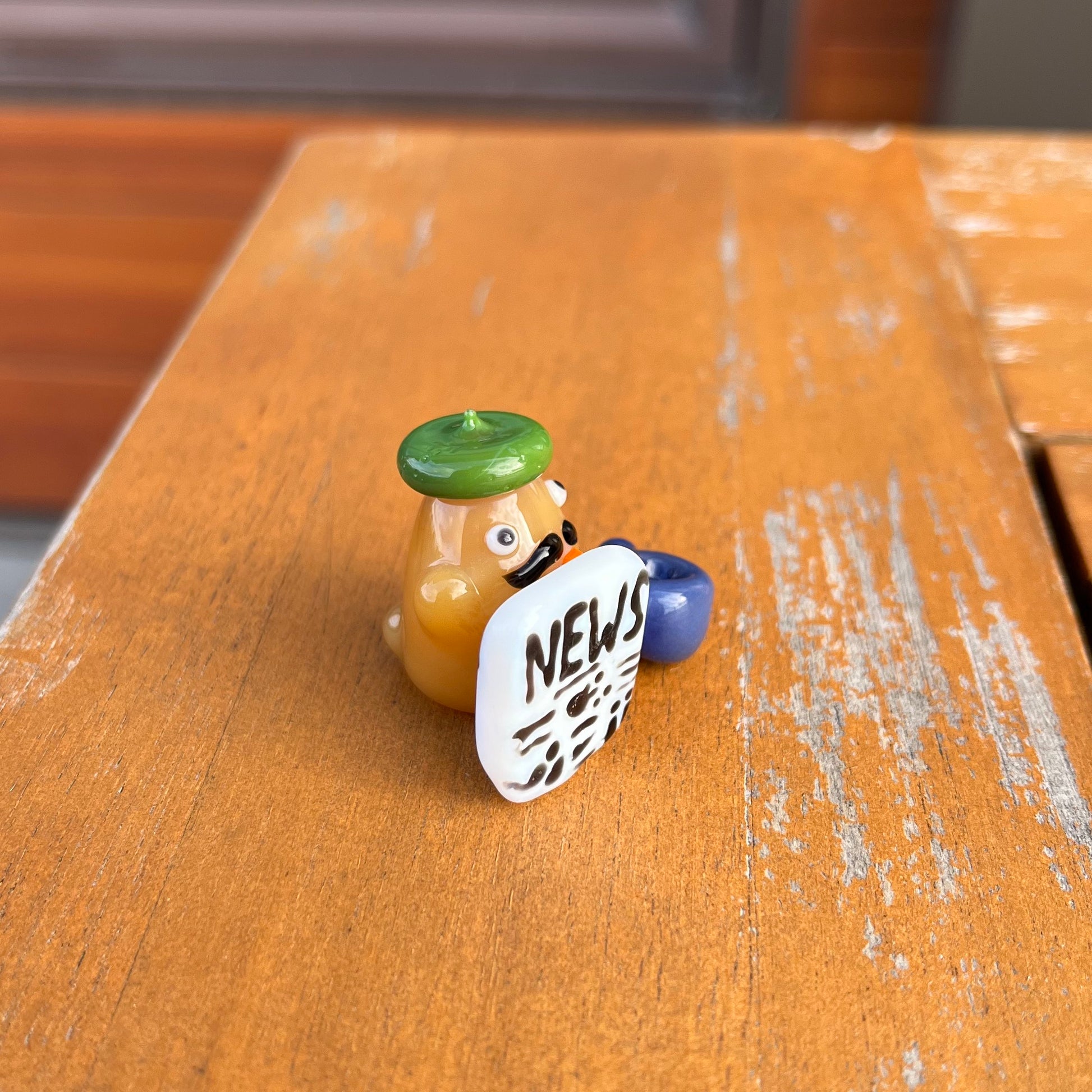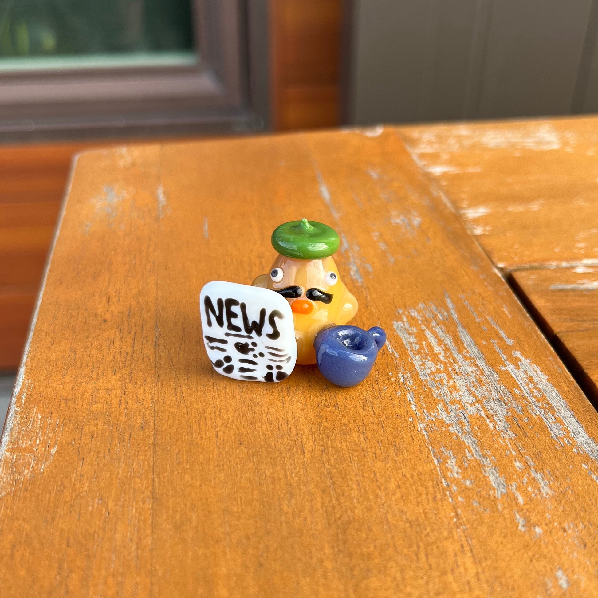 This is a glass figurine of mustache duck with a New York Times Metropolitan Diary section and a mug for Mary Clare. : )