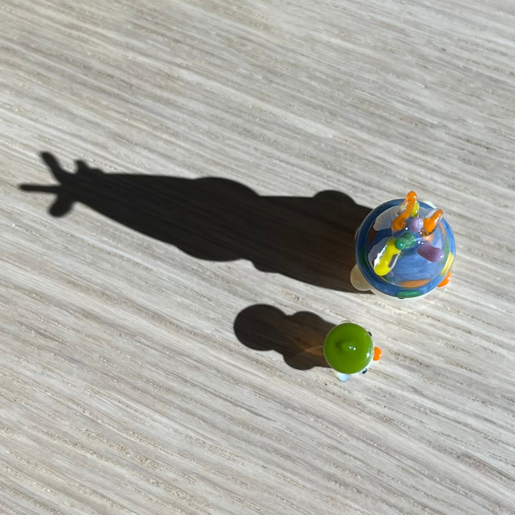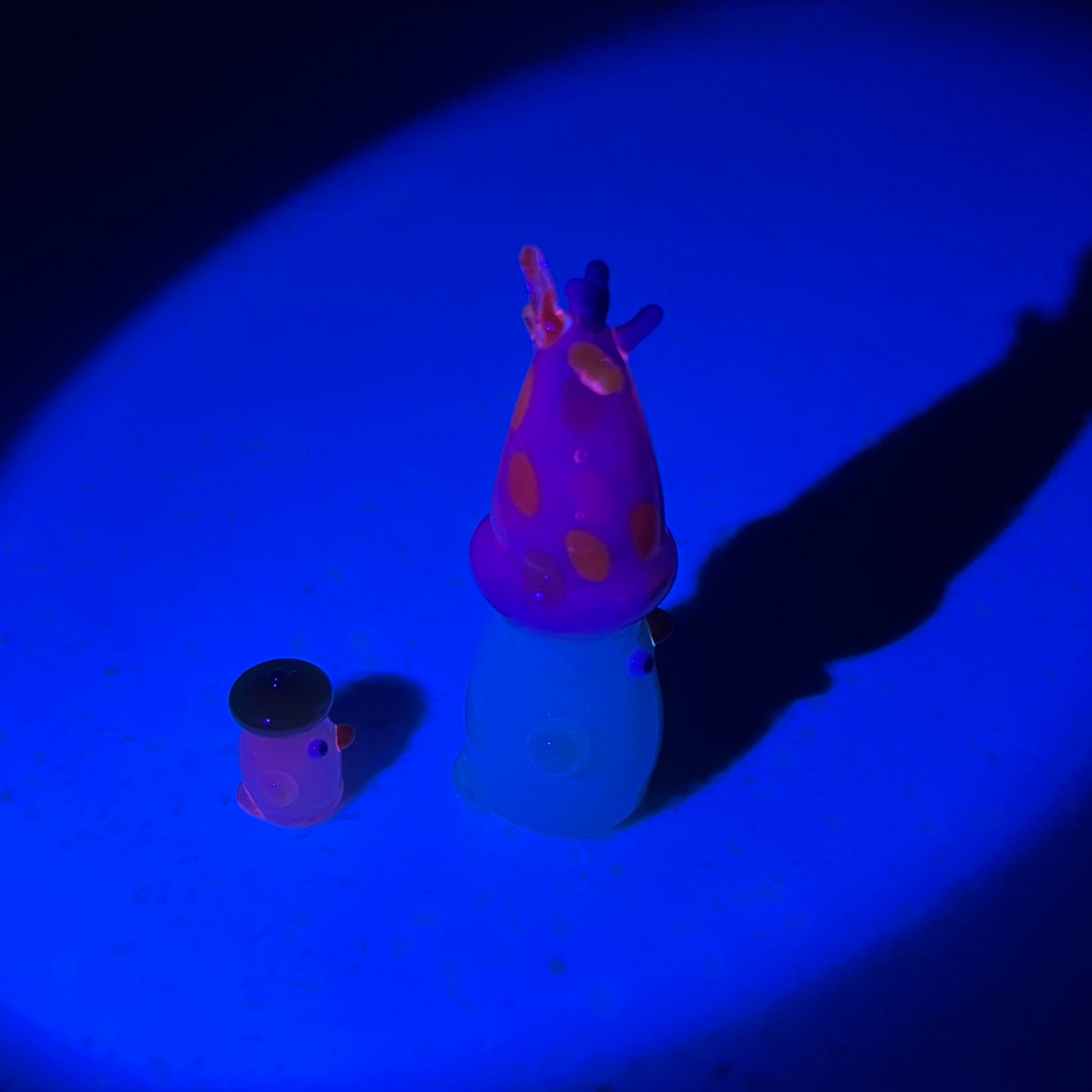 This is a set of 2 glass figurines of a UV party duck and a UV mini duck for Steph. : )