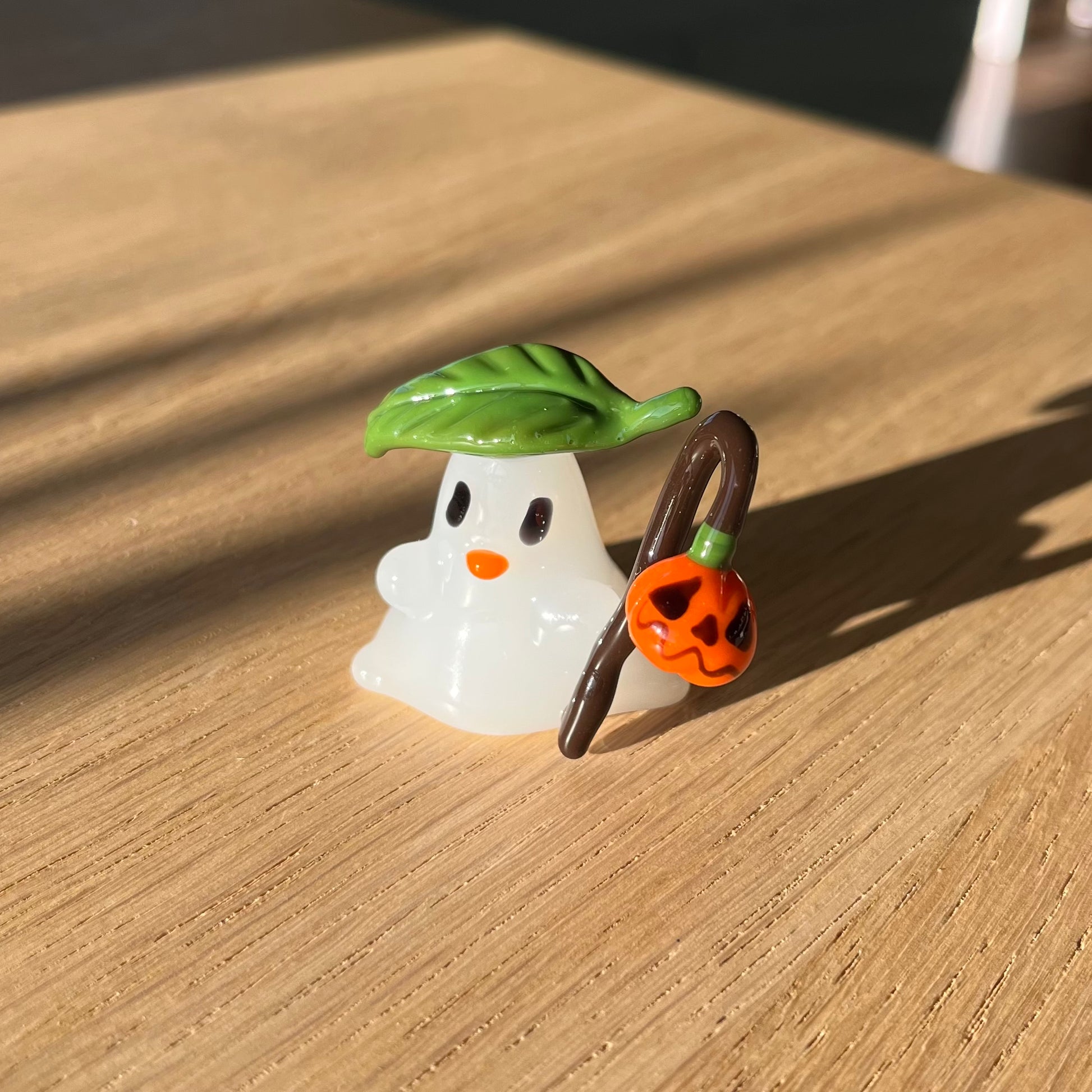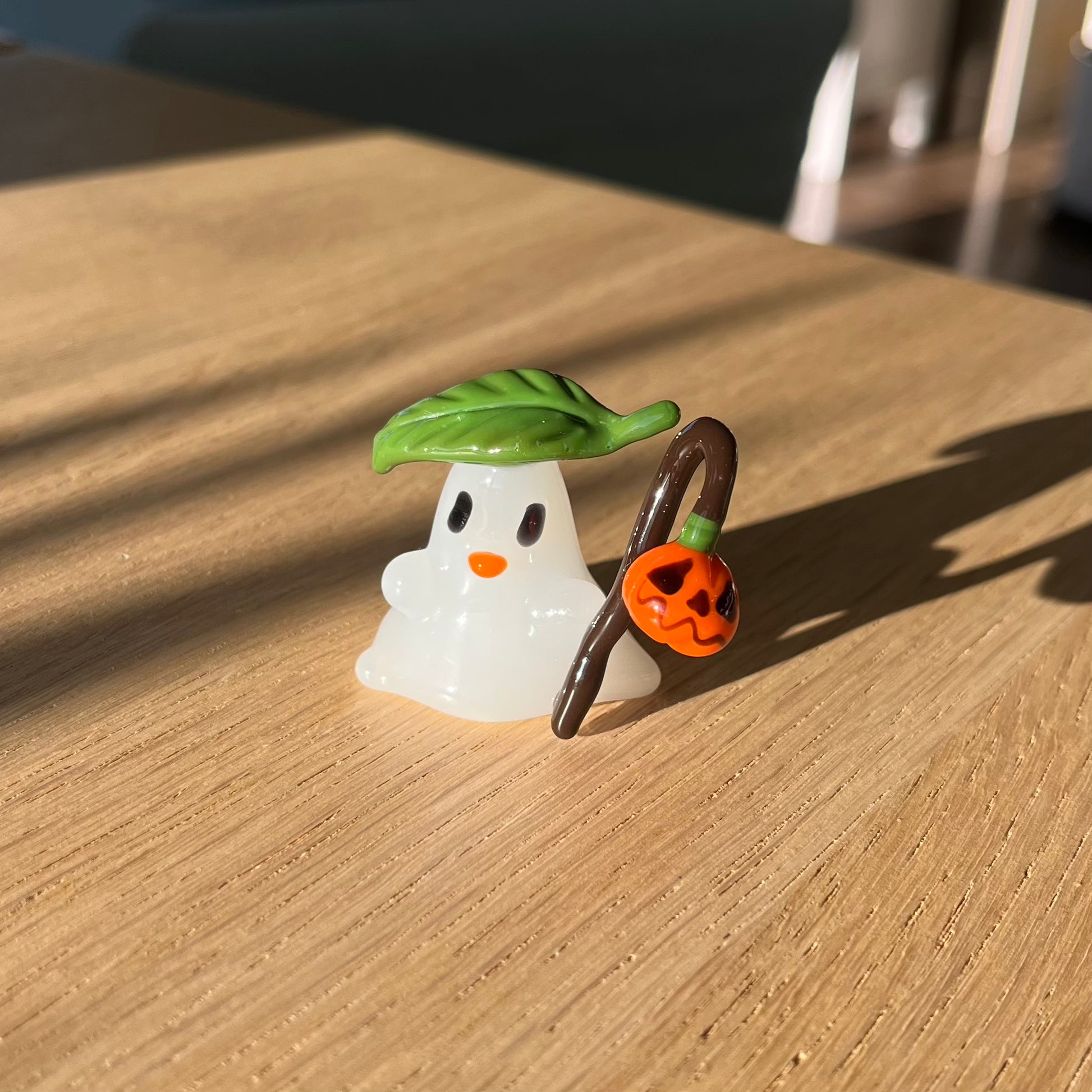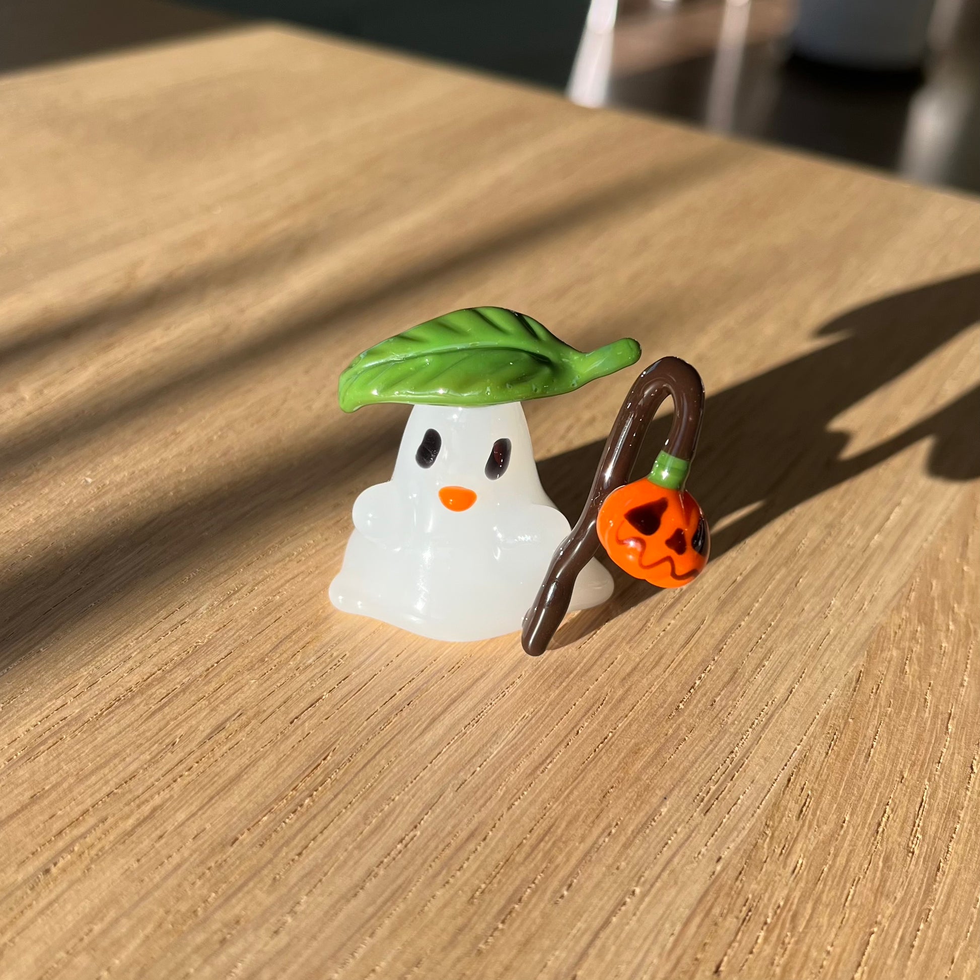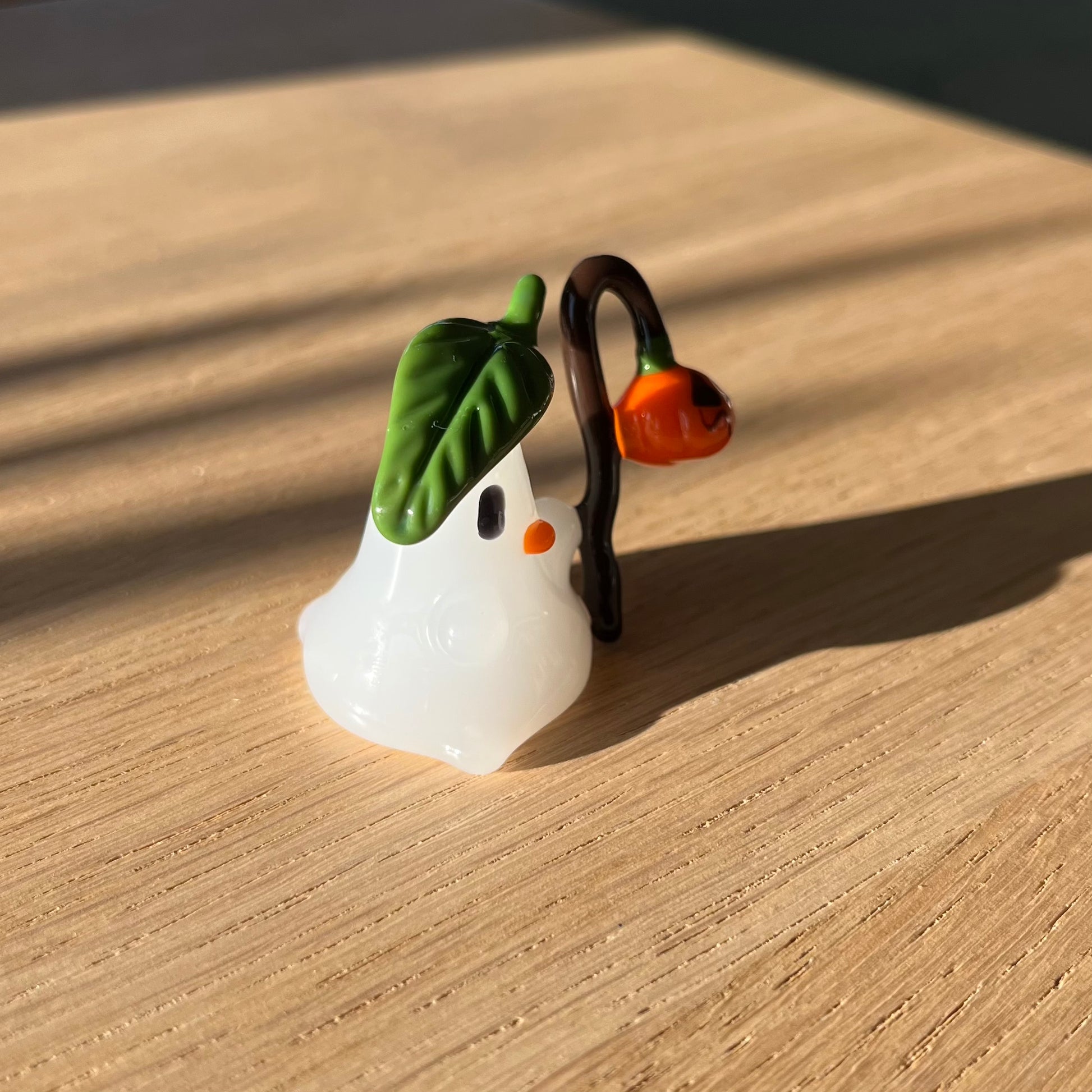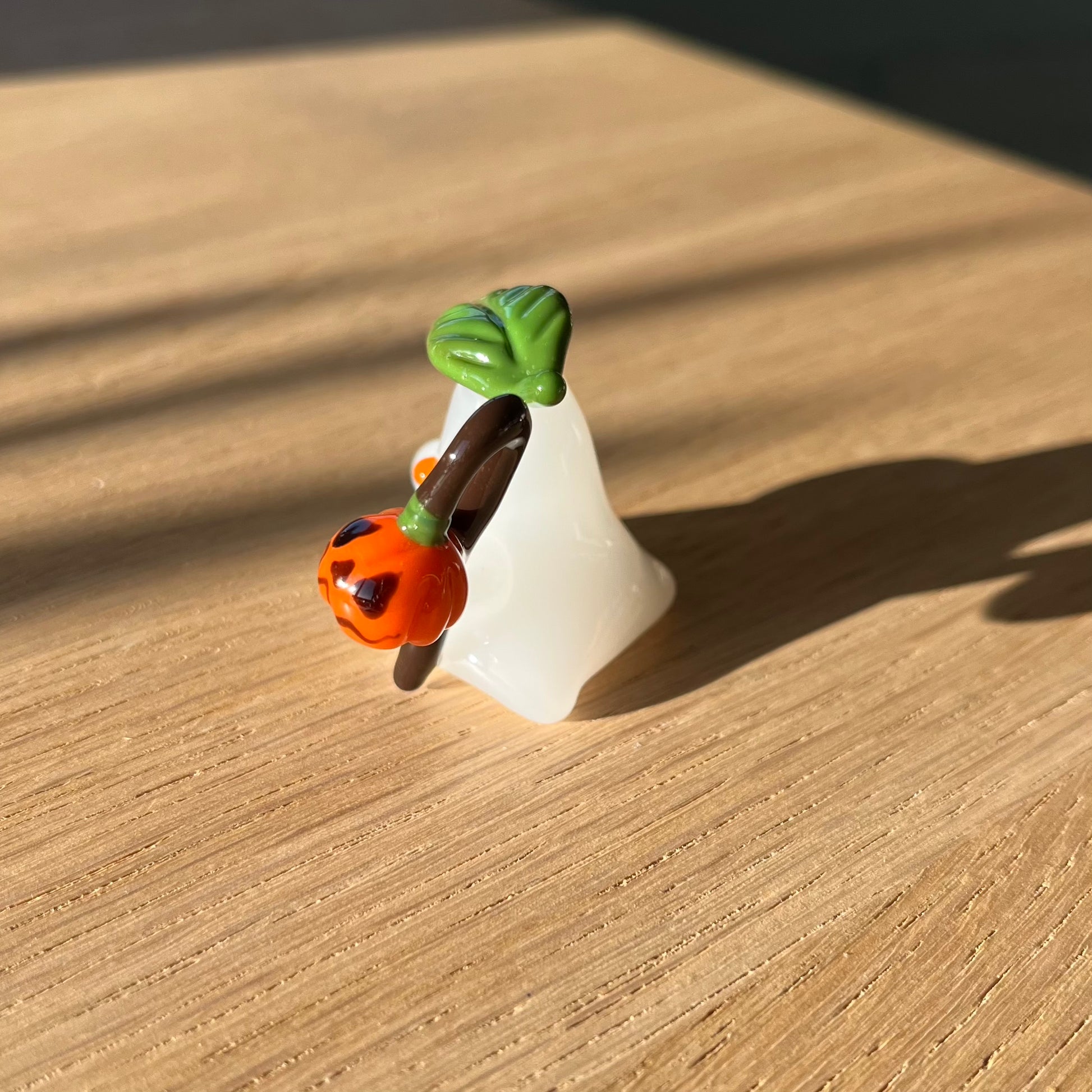 This is a glass figurine of ghost duck with a jack-o-lantern for Vincent. : )