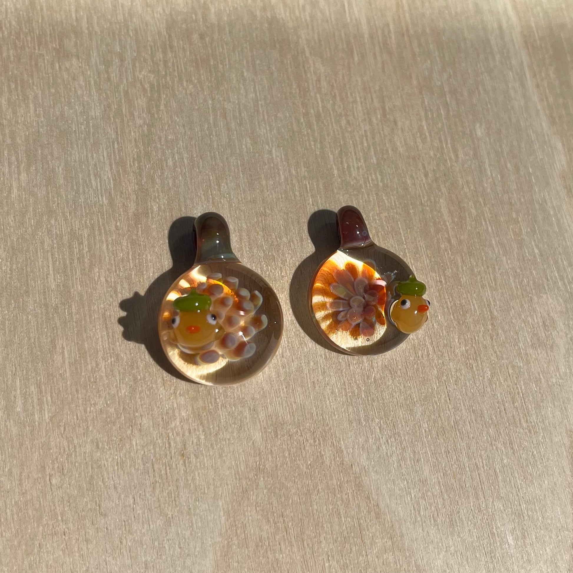 These are pendants with ducks made in collaboration with Malcolm Ford (@malcolmfordglass on Instagram).