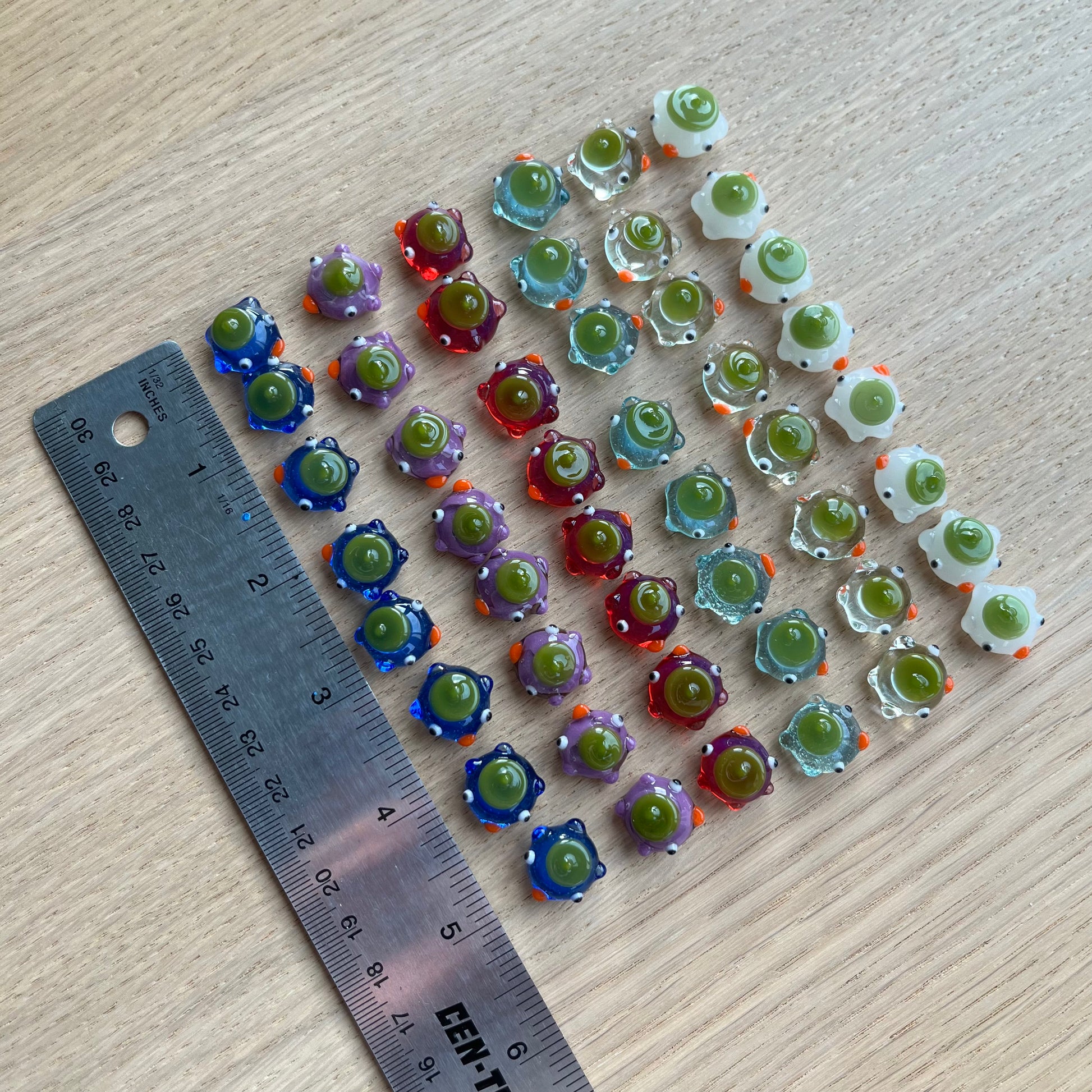 Dimensions: Ducks vary slightly in size, shape, and shade (they are delightfully handmade!). Ducks are each approximately 5/8 inches x 5/8 inches x 3/8 inches