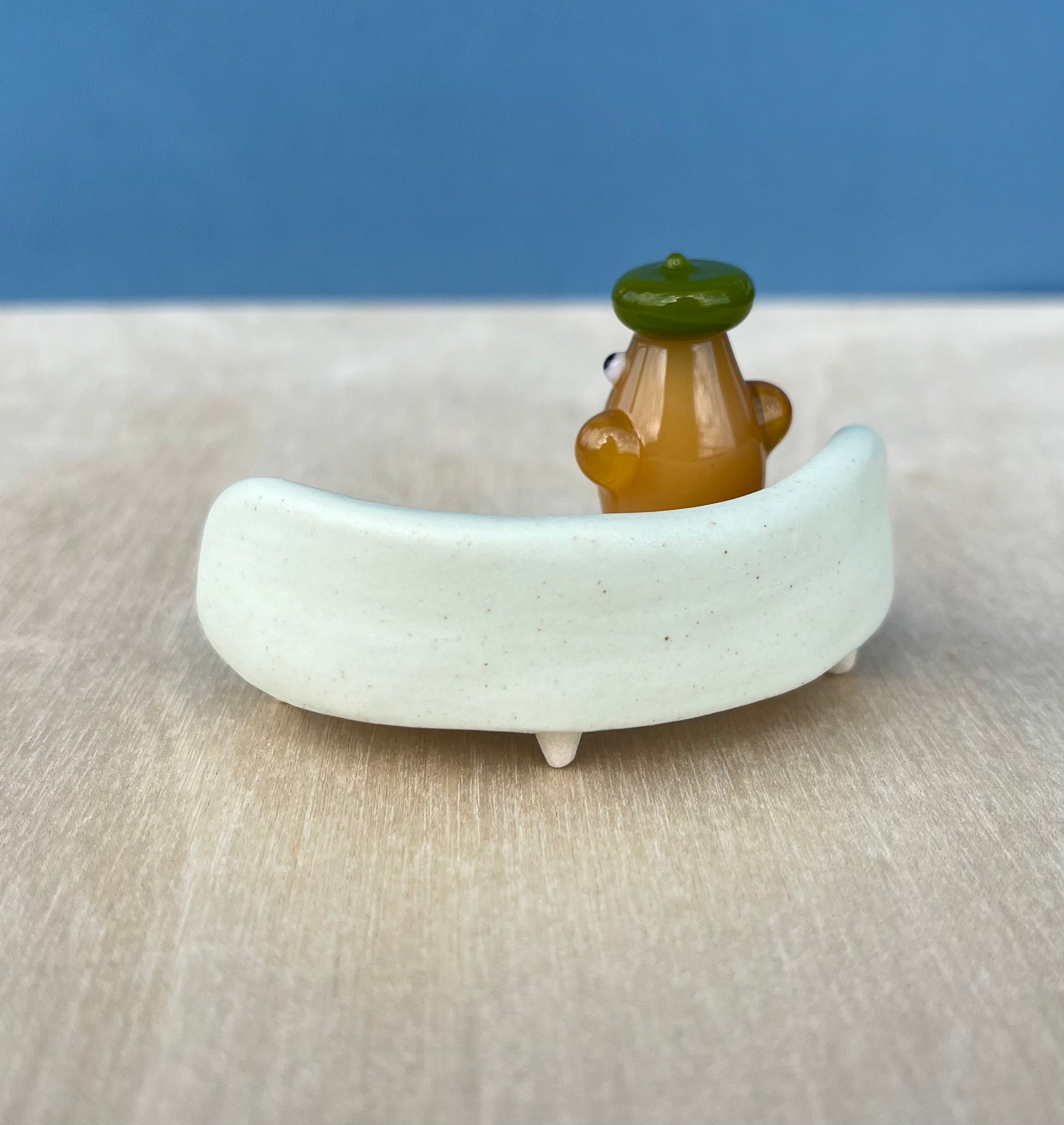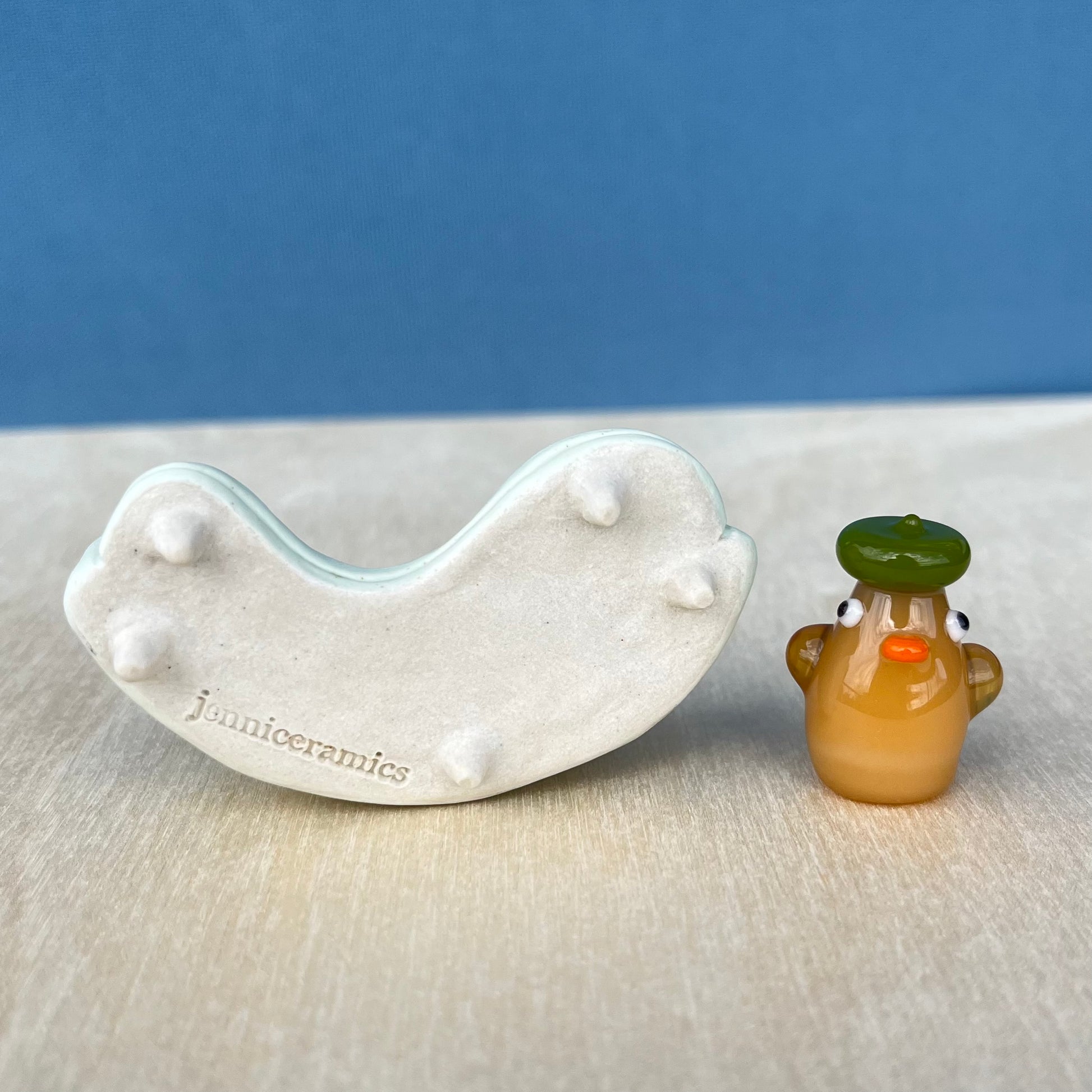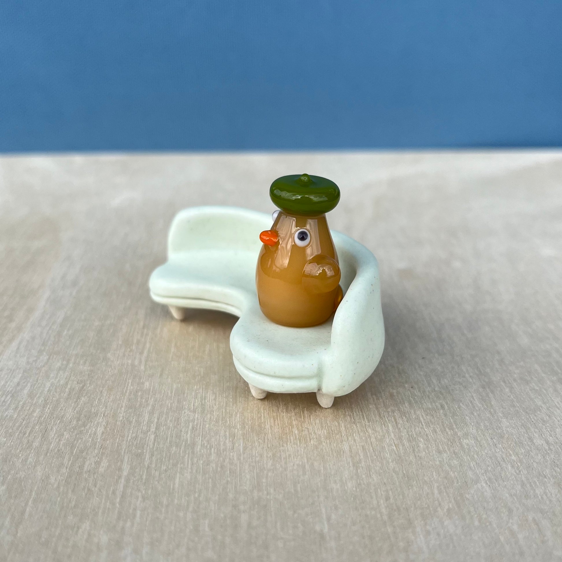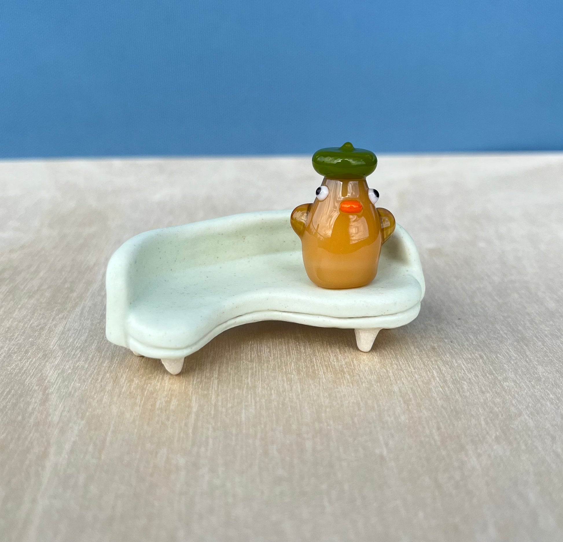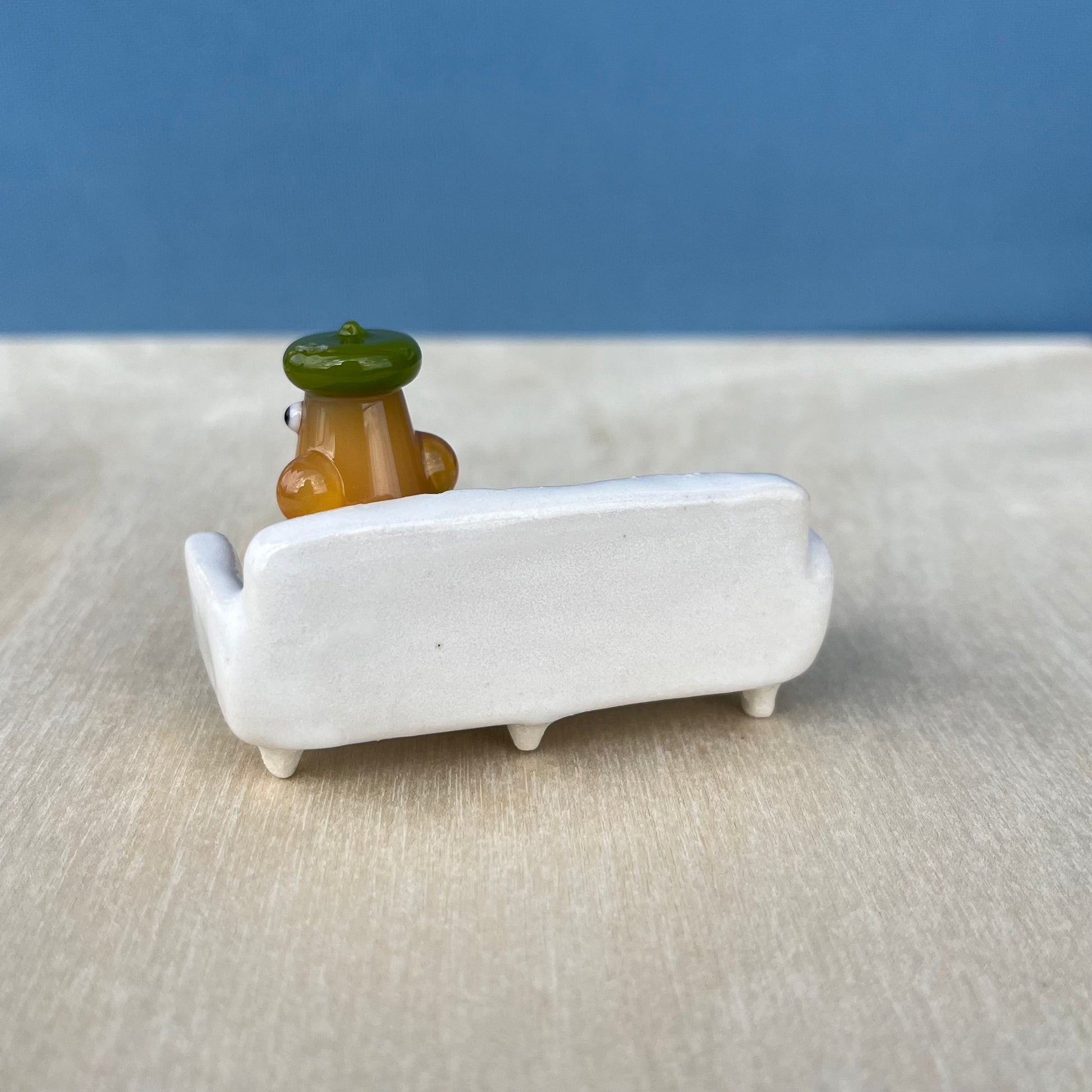 Jenni Liu is a lifelong Seattleite who took her first pottery class in 2019 and after a bit of a rough start, fell in love with the medium. She enjoys making cheerful functional pieces, including ducks, eggs, potatoes, and other food themed pieces. She recently started playing around with making miniatures, including the couches in this collaboration.