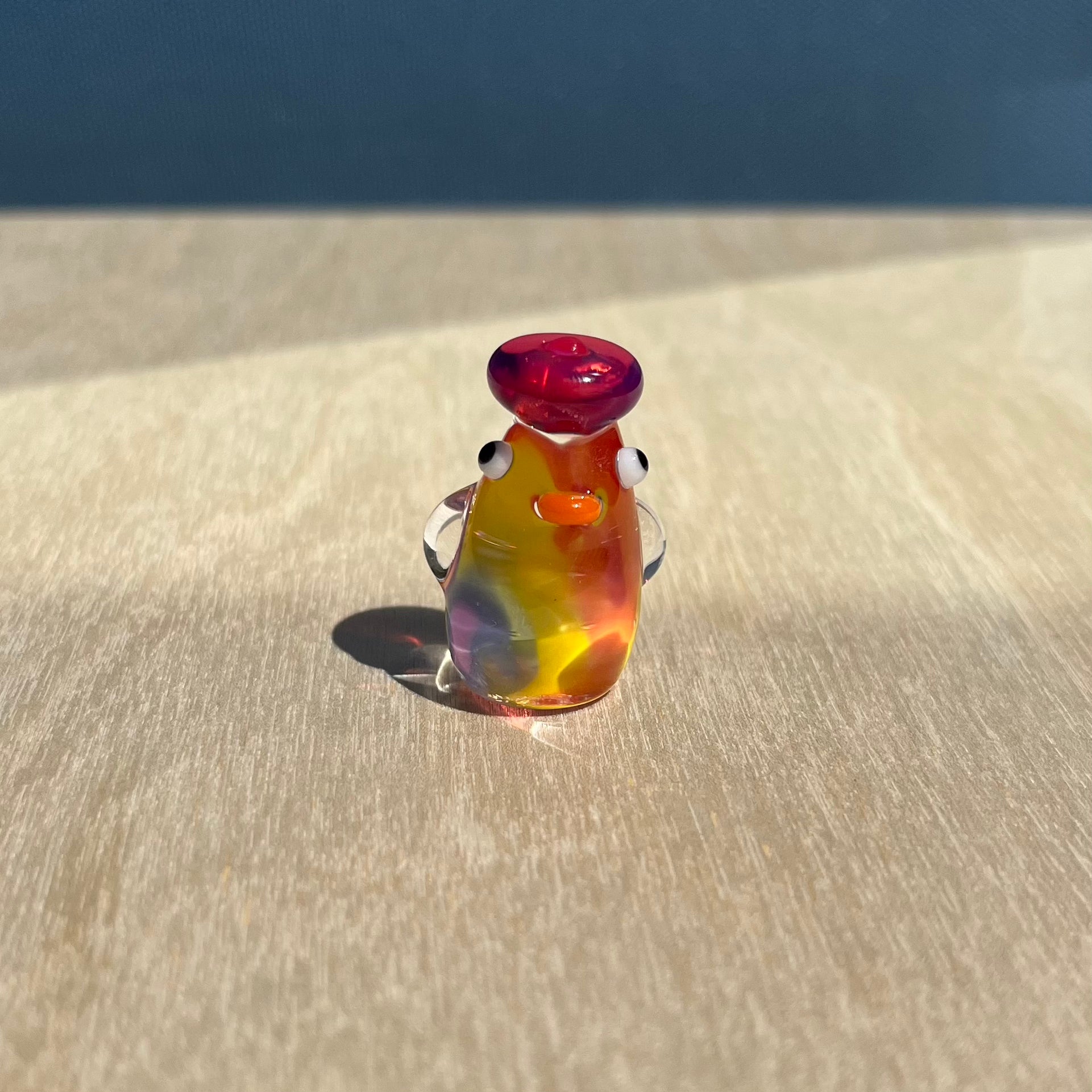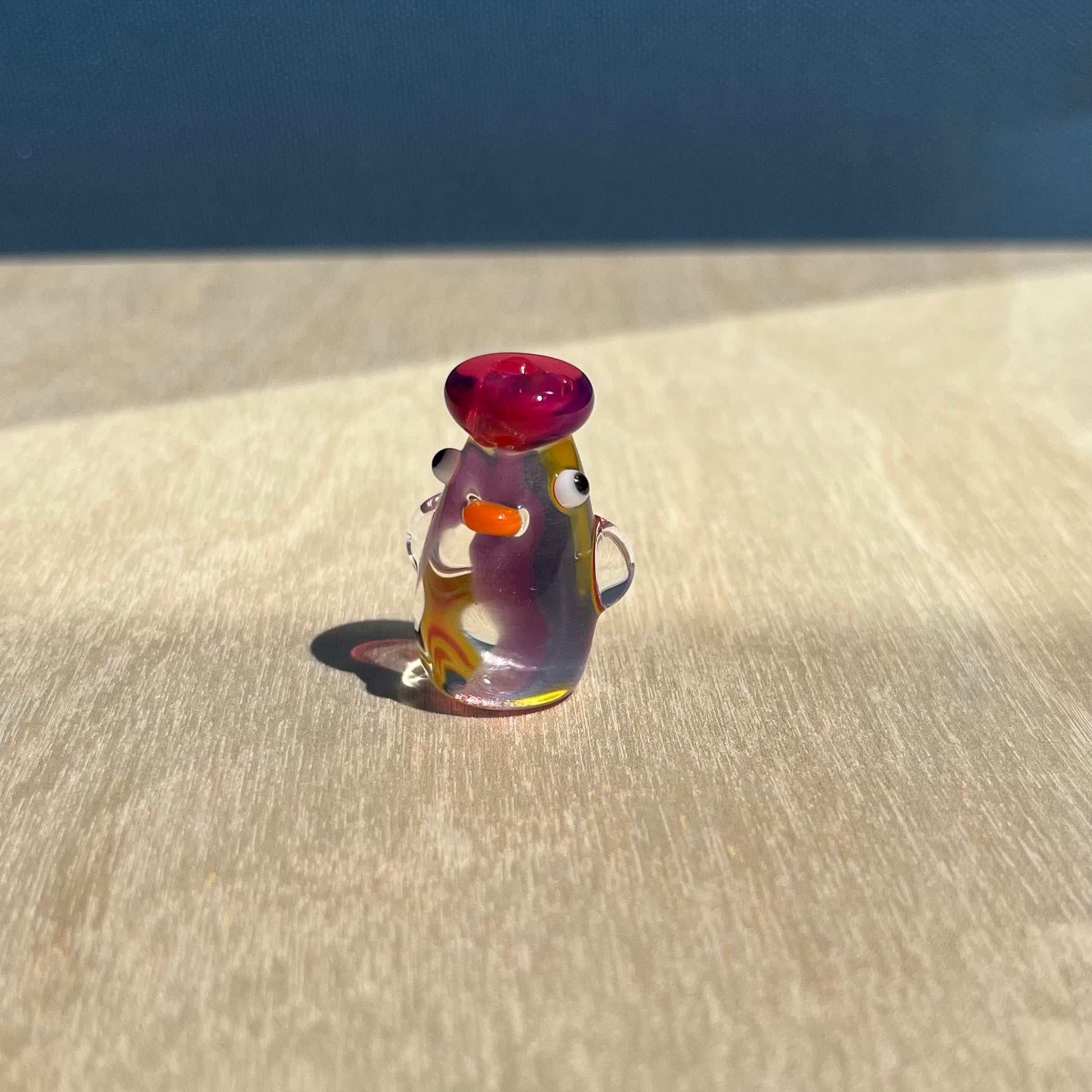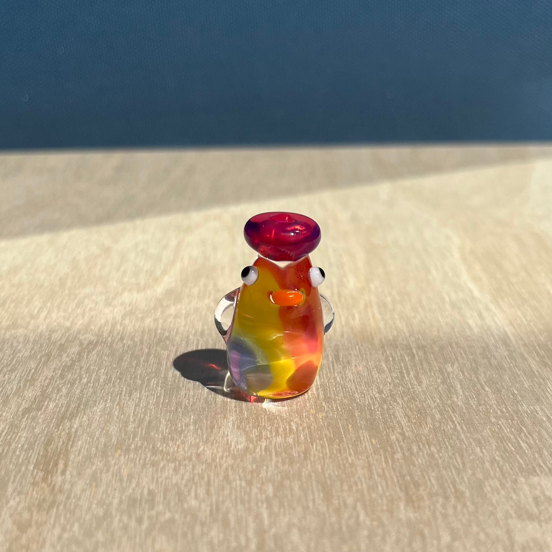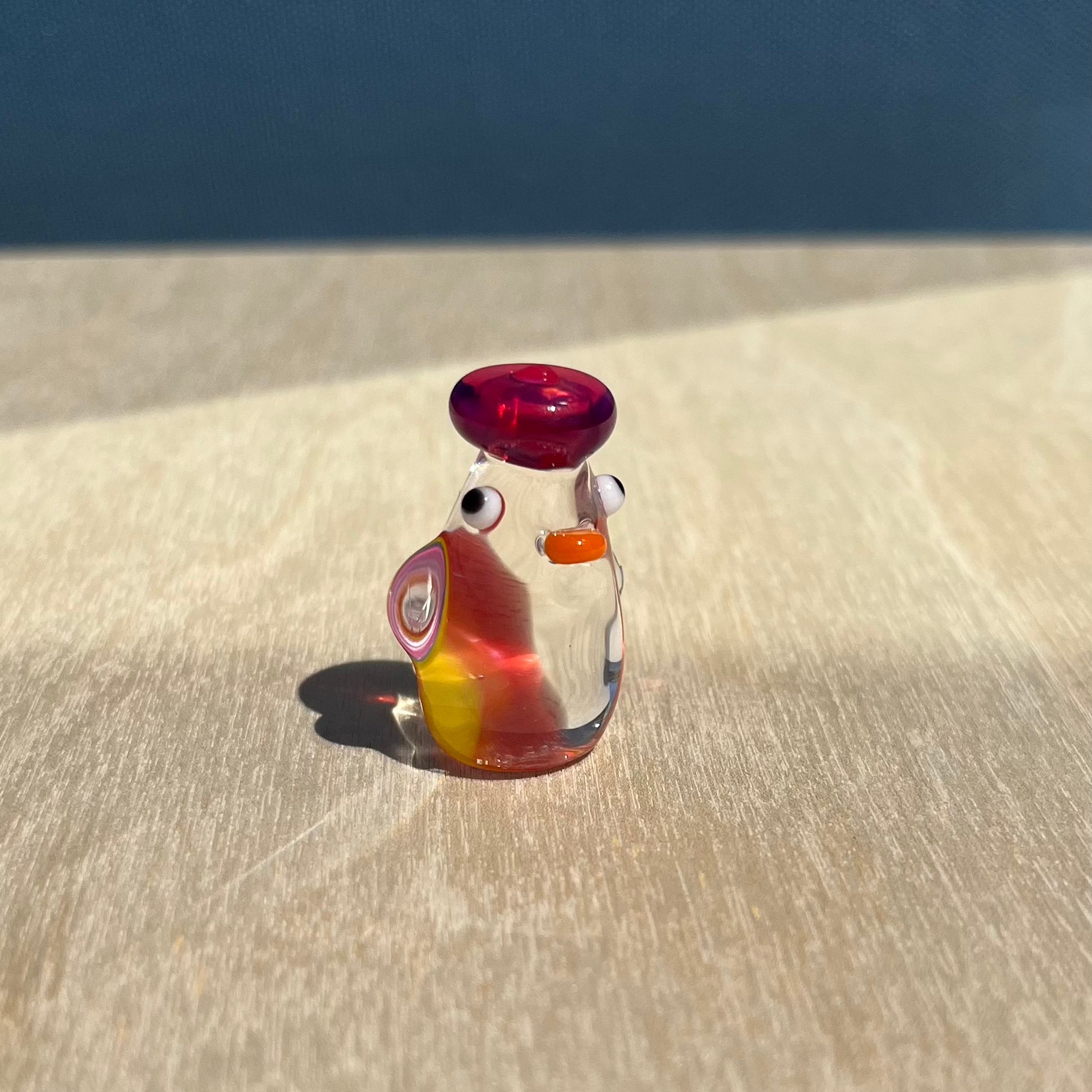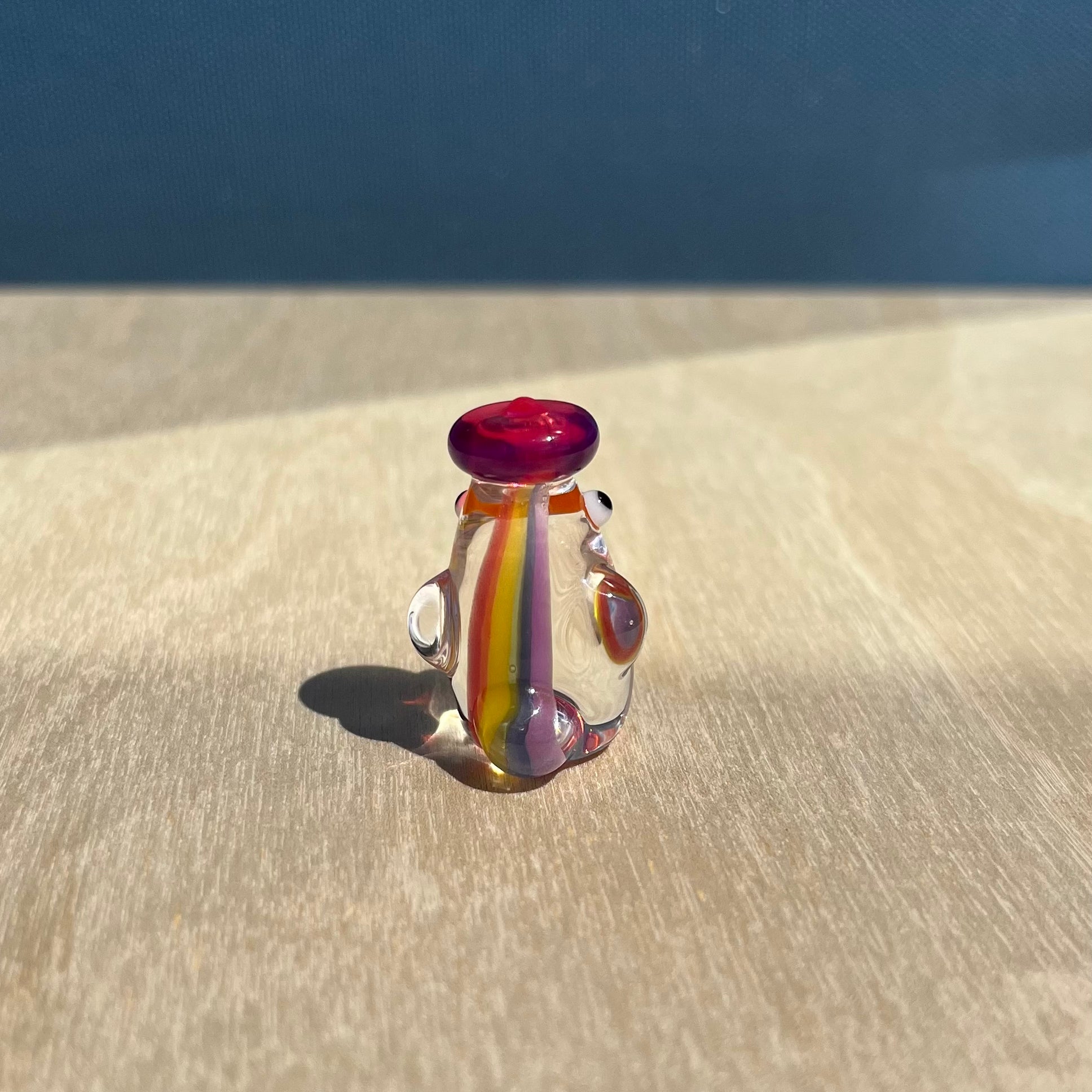 This is a glass figurine of a rainbow duck that is translucent with a lovely lens effect! The rainbow will look different from every angle, and some angles may show a clear duckie. : )