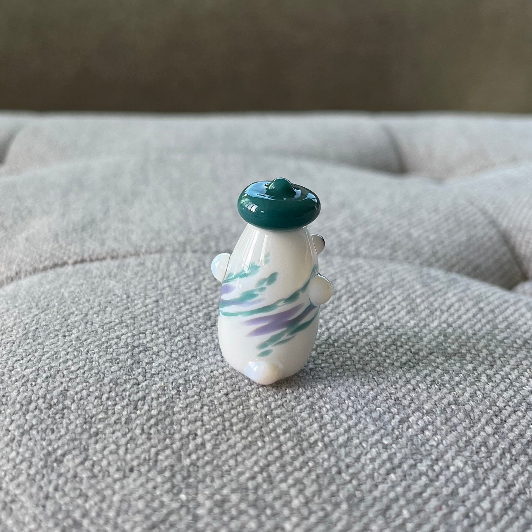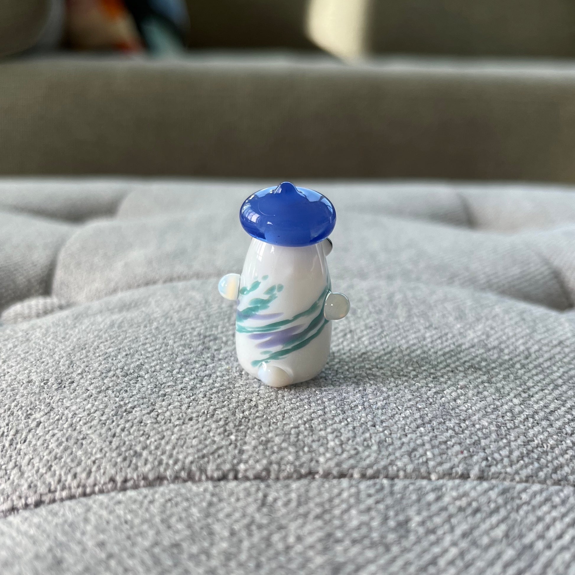 Aaron is a very skilled flameworker in Seattle and has been making elaborate glass sculptures for about a decade. He has developed some unique color applications including this pattern, inspired by that cup that was everywhere in the 90's.